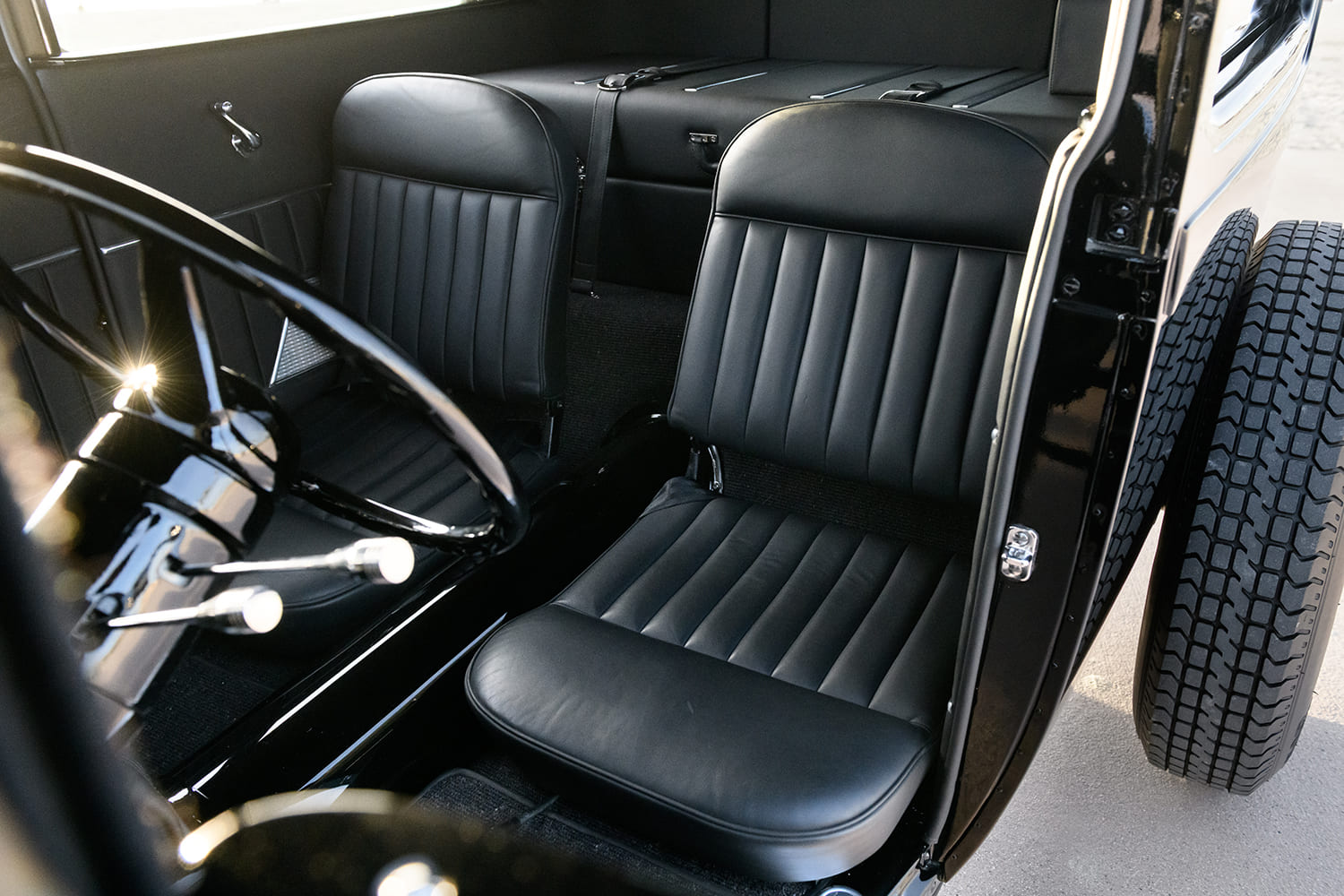 The Andersons are the third owners, having purchased the Model A from the second owner, who acquired it from the original owner’s children. The sedan was also restored in the ’70s by the original owner’s family for their dad. It had been stored for many years, with the odometer showing 52,000 original miles. In fact, the vinyl top was in such excellent condition that John left it intact, replacing only the two vinyl end strips.