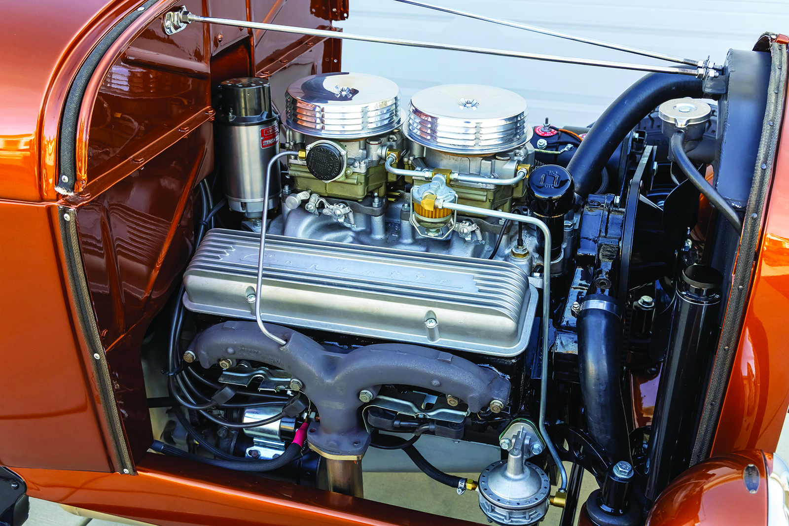 The copper-colored Model A is an excellent example of an early ’60s-era hot rod. Based on the original Model A sheet metal and frame that includes a truly vintage 1956 Corvette V8, the build covers all the bases.