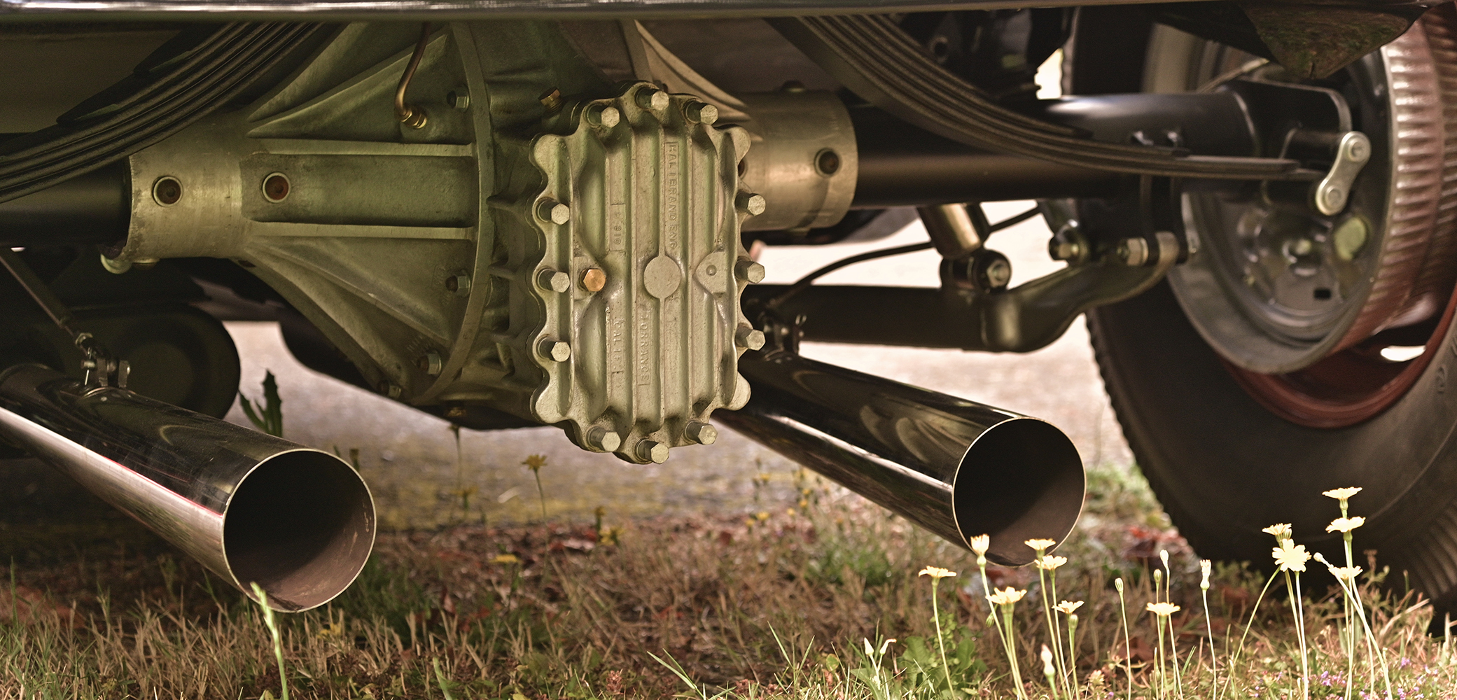 Out back, he installed Ford Model A springs and Ford Galaxy brakes and made the rear sway bar. The chassis rolls on 16-inch 1940 Ford wheels with 16-inch Coker 550 bias-ply tires on the front and 700 Coker bias-ply on the rear.