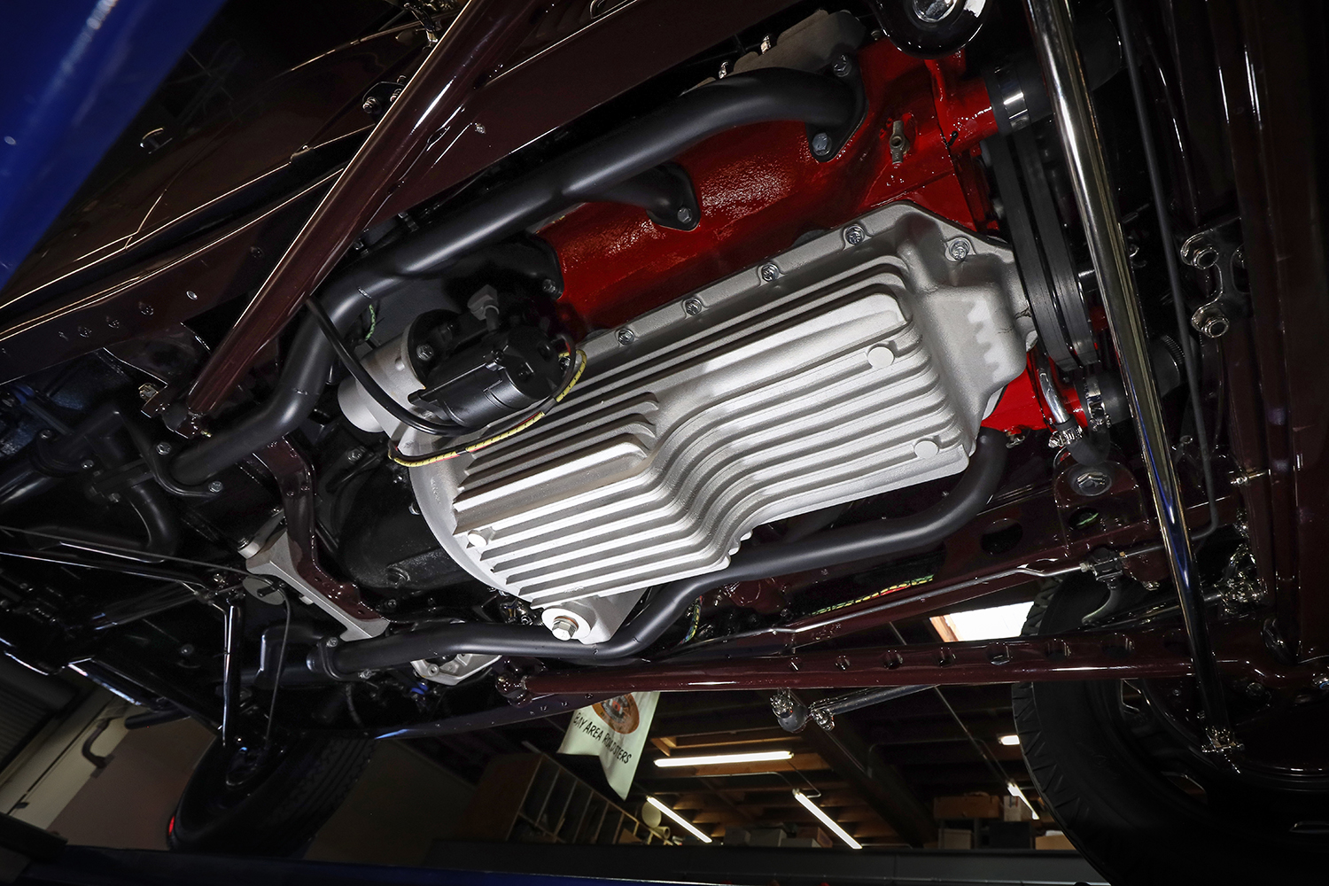 18 Aluminum finned oil pan exhaust headers 1932 Ford Roadster underside