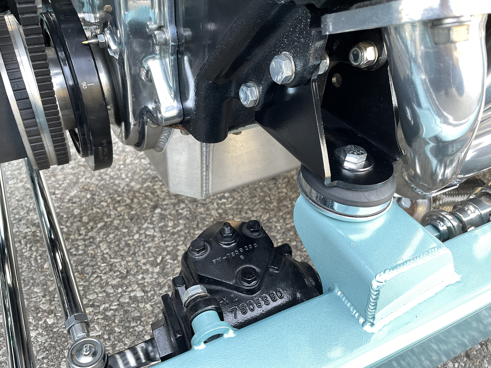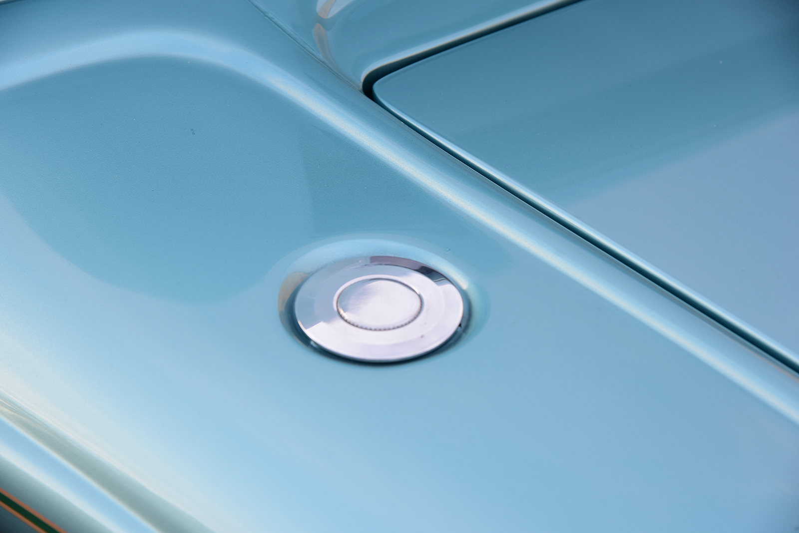 With the degraded condition of the rare factory sheet metal, it would take a true master to bring it all back to life. Rob Allison of Pinhead Metal Craft in Elmira, Ontario, Canada, took on the task, starting with fabricating fresh floors and the lower trunk followed by all lower side panels and new wheel wells. He followed by filling and smoothing the firewall while also metal-finishing the body and setting all the gaps. Schwartz gets the credit for all body mounts and alignment to then prepare it for the final steps. When it came time to give the coupe a subtle elegance, Paul’s wife, Raquel, selected PPG’s 1966 Ford Seafoam Green. John Miles of Vintage Performance in Waterdown then handled the final bodywork and laid down the vibe. With just enough plating from the dunk tank adding brilliance, the final icing came from the brushes of Rollie Guertin who added the fine lines to the body.