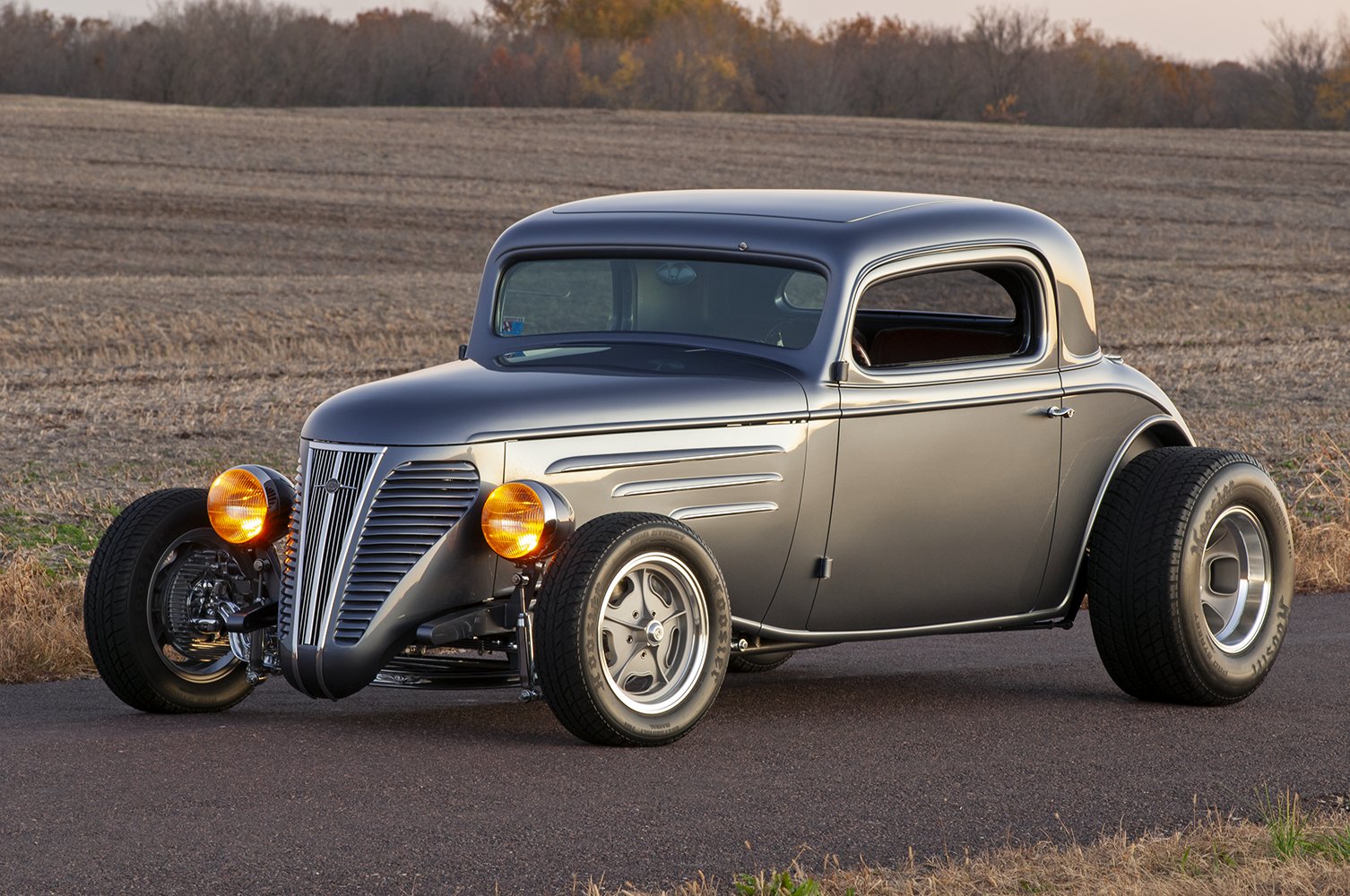 04 1935 Chevy Coupe head on aggressive stance vertical grille classic street rod look 1