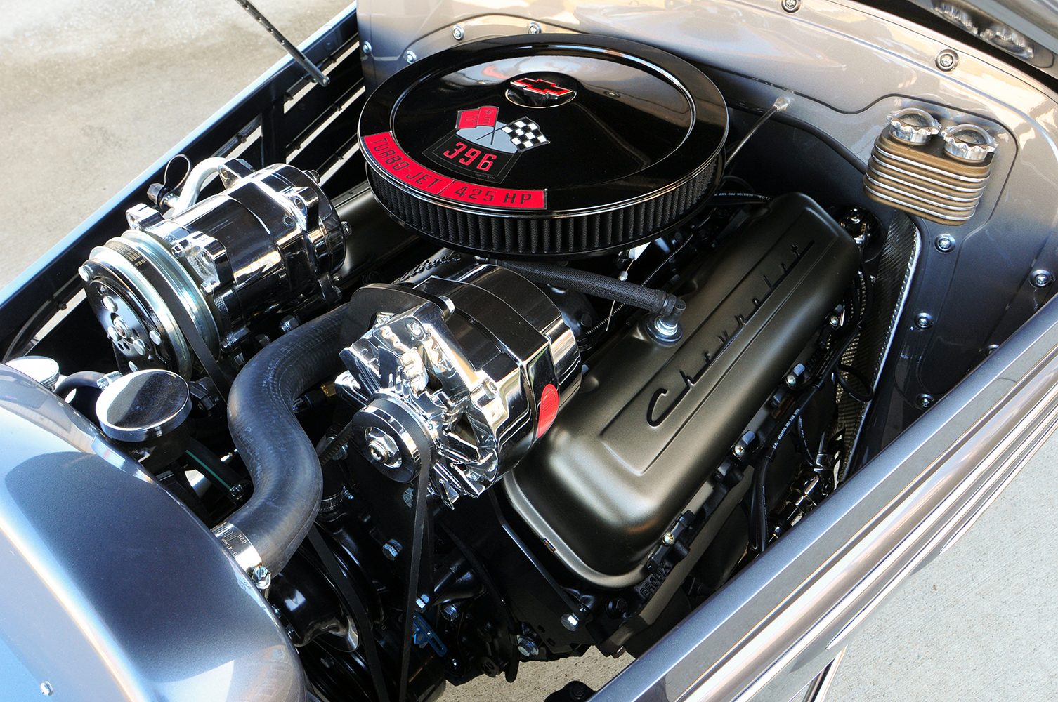 07 1935 Chevy Coupe big block 396 Chevrolet engine bay chrome accessories high performance build