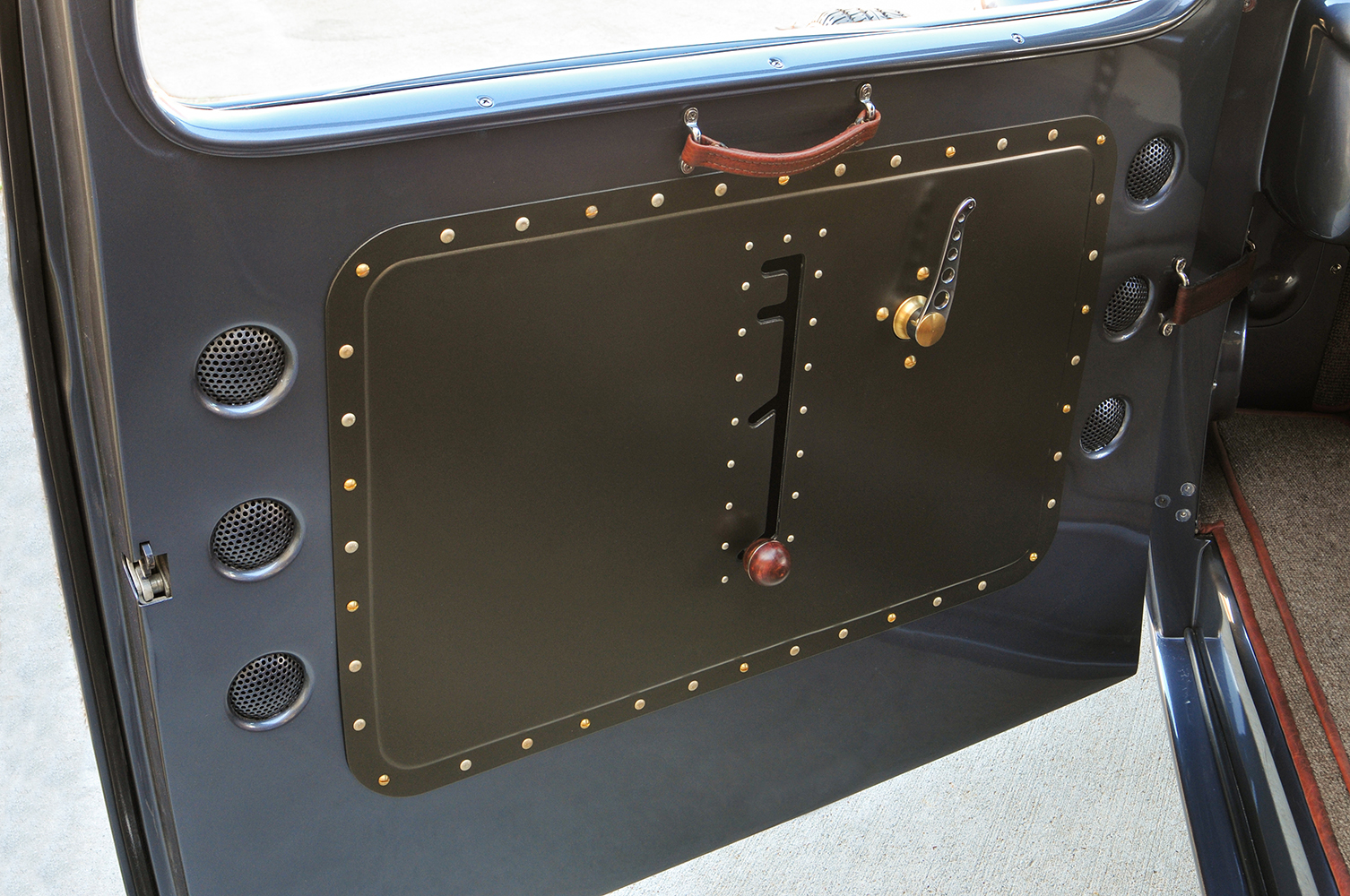 20 1935 Chevy Coupe custom metal door panel riveted trim leather pull handle industrial look