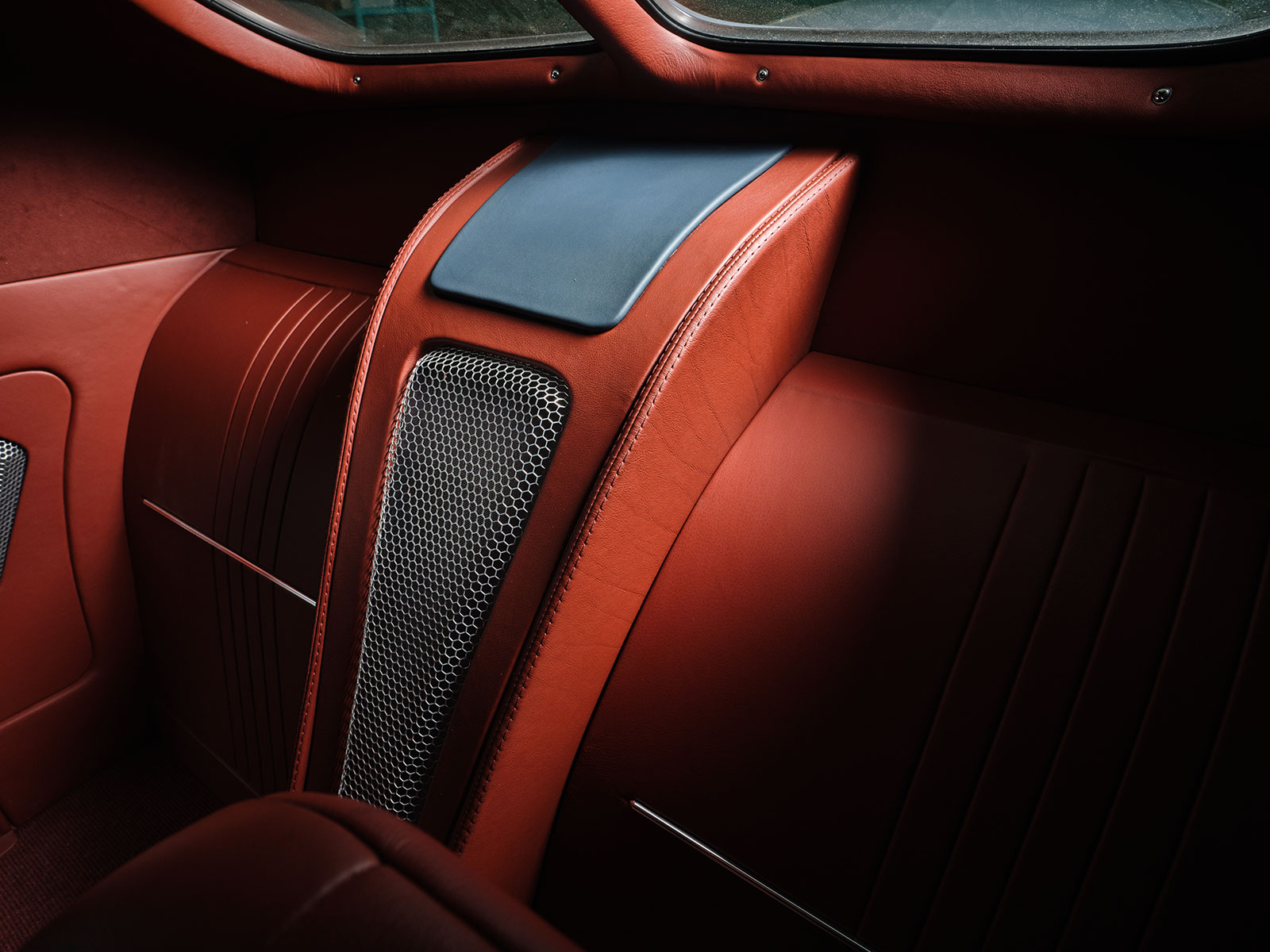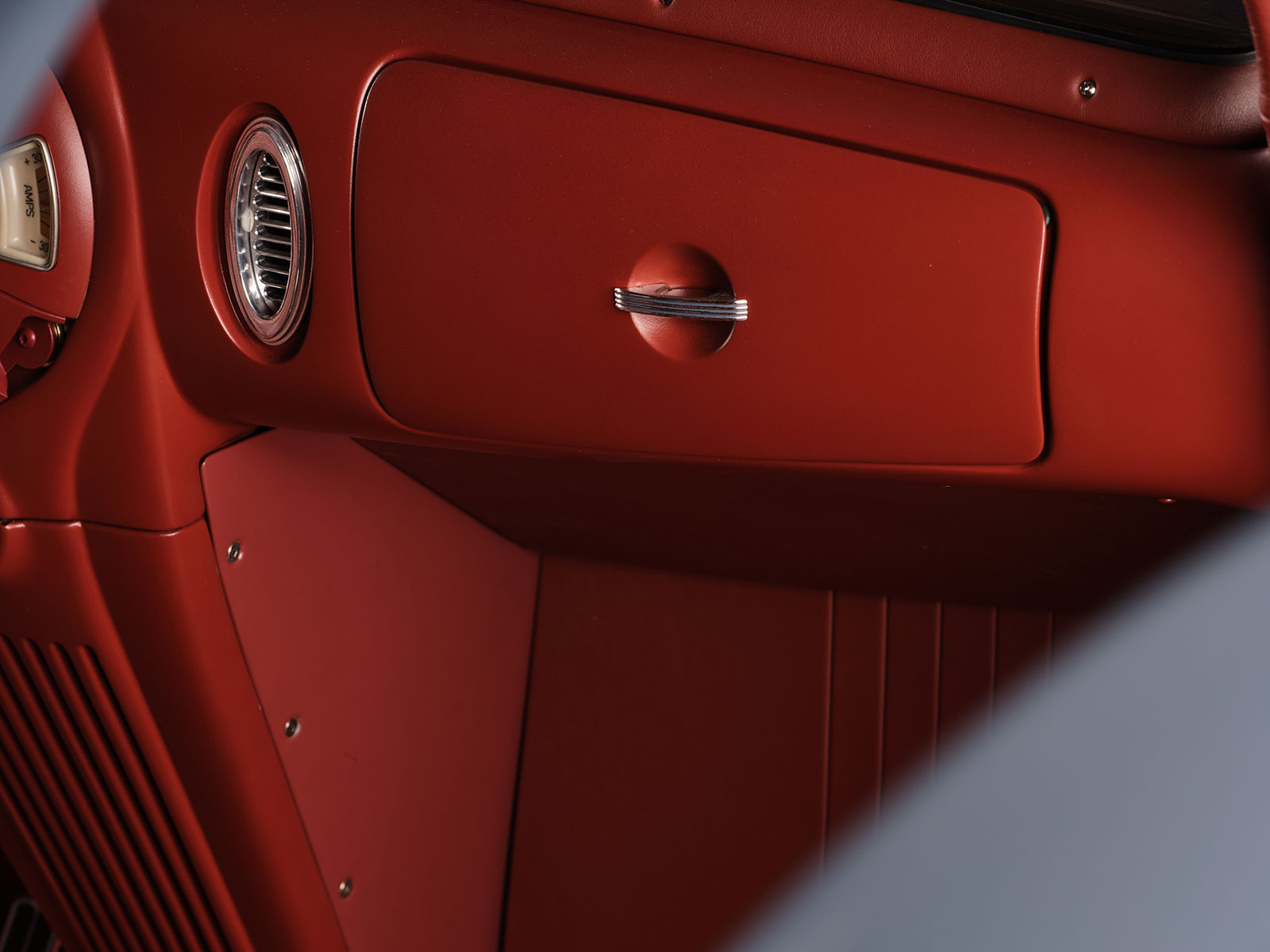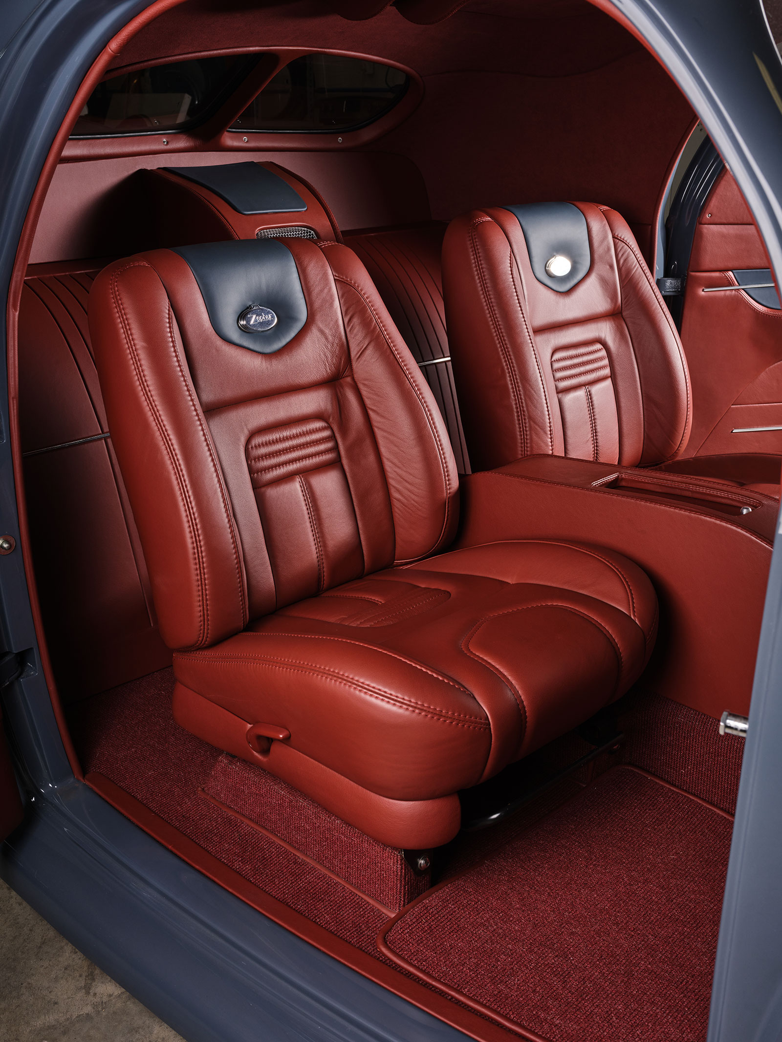 08 Interior shot of the 1938 Lincoln Zephyr upholstered in maroon leather by Hot Rod Interiors by Chuck