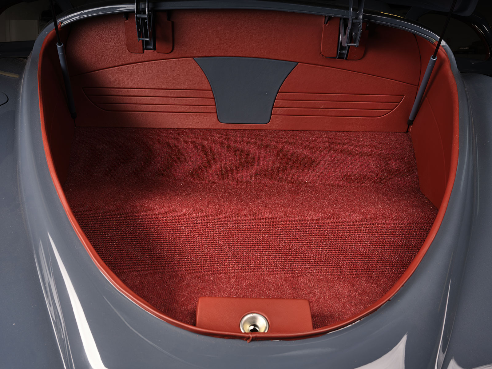 Rounding out the modern-day approach is the interior with its reworked OE dash with shortened “waterfall” that now accepts the restyled air vents that flow fresh cooled air via a Vintage Air system. The original 1938 Lincoln Zephyr gauges were refinished by Redline Gauge Works with new electronic internals. From here SaltWorks Fabrication handled the wiring utilizing a Coach Controls wiring harness and system. The steering column comes by way of an ididit steering column with a Juliano Banjo wheel that is leather wrapped. The ’00-era Lincoln power bucket seats that are adjacent to the custom center console are upholstered in maroon leather by Hot Rod Interiors by Chuck. Other stitchwork by Chuck include the Mercedes square-weave carpeting, the Alcantara headliner, door and kick panels, as well as the neatly appointed trunk.