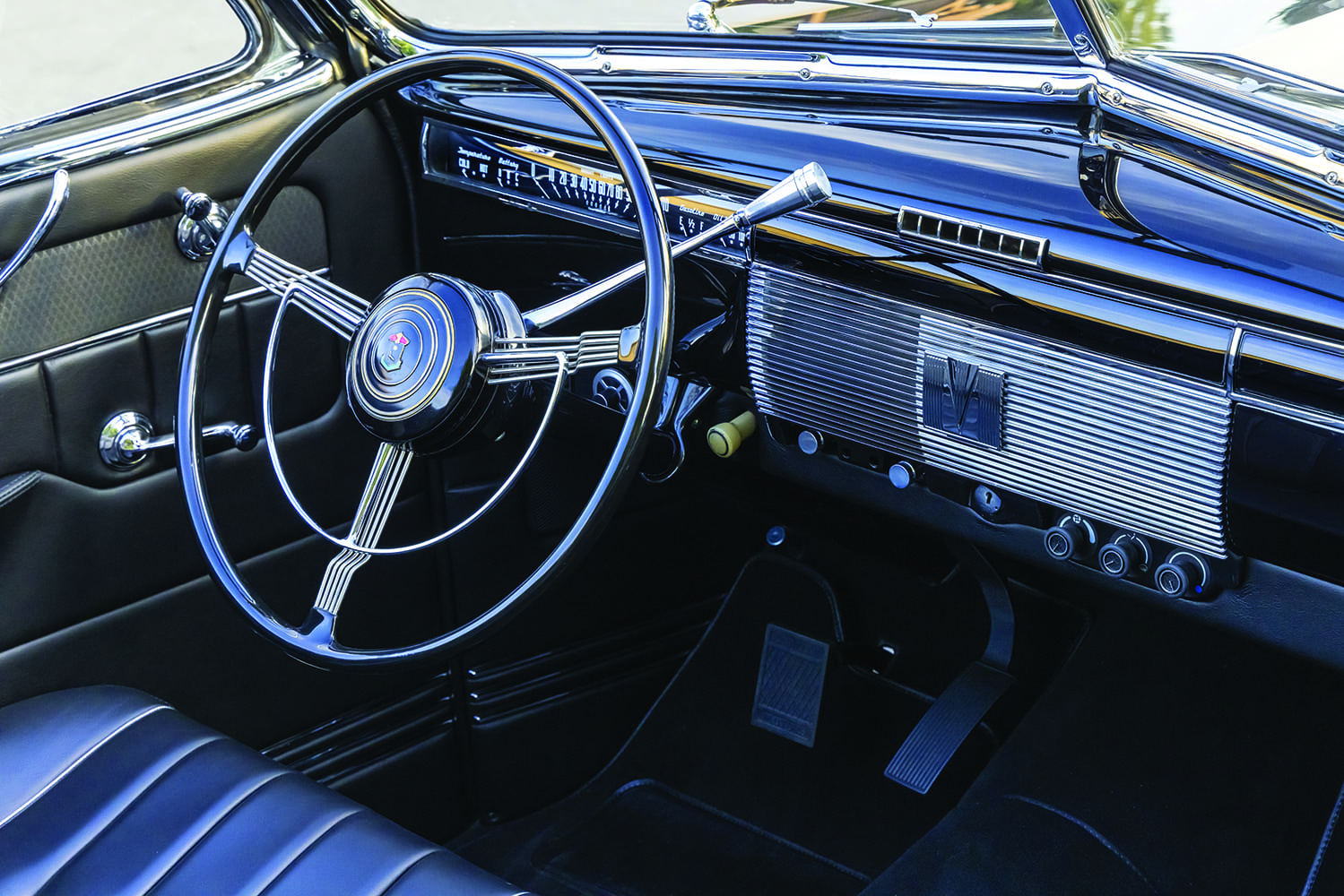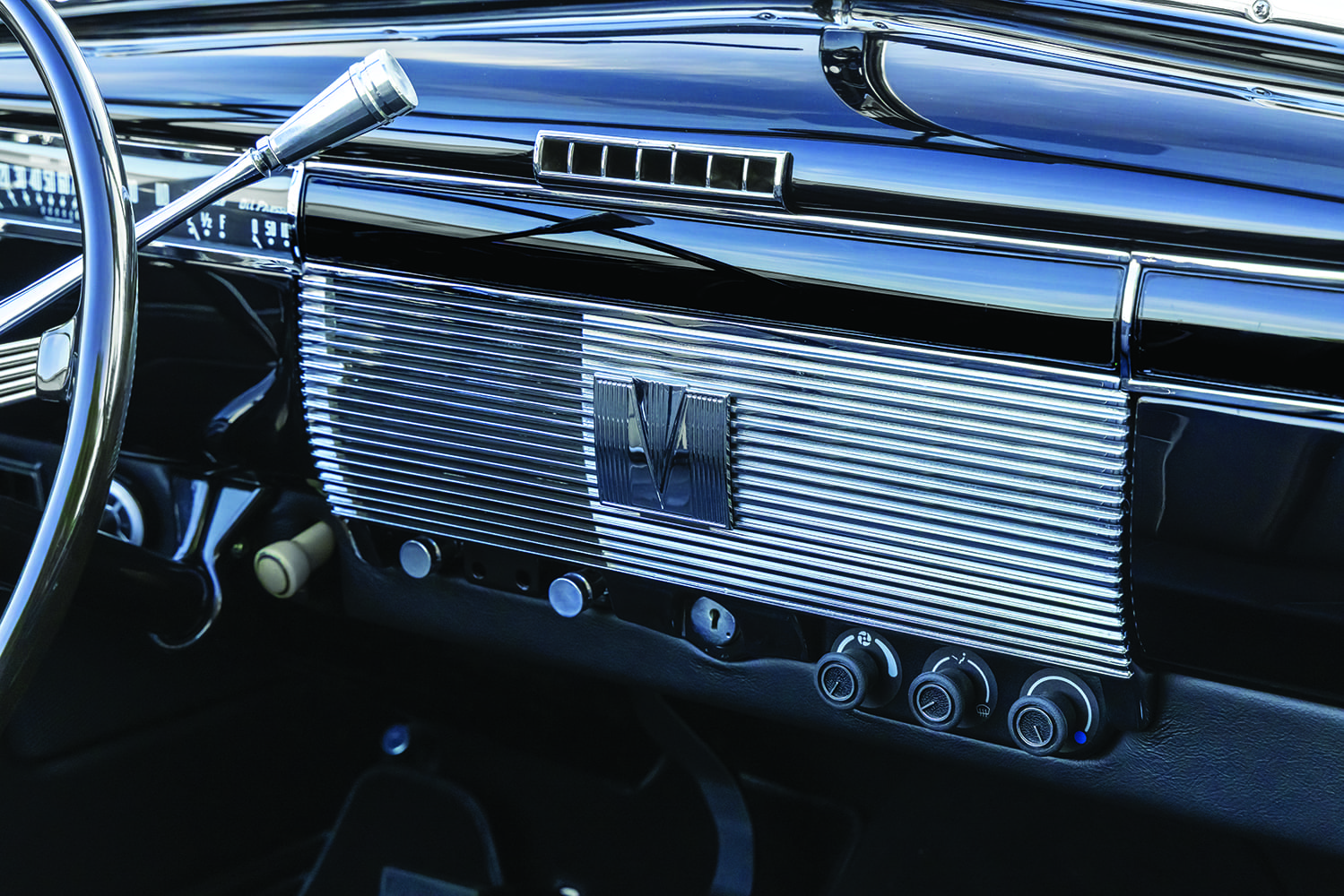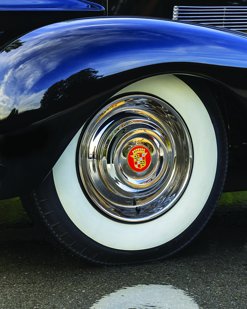 The wheels and tires come from Coker Tire. Initially, the wheels would have been 16 inches in diameter, but SHRF fitted the Caddy with GM 15-inch steelies covered with 1954 Caddy hubcaps. The wheels are wrapped in Coker Classic wide white rubber measuring 7.00×15.