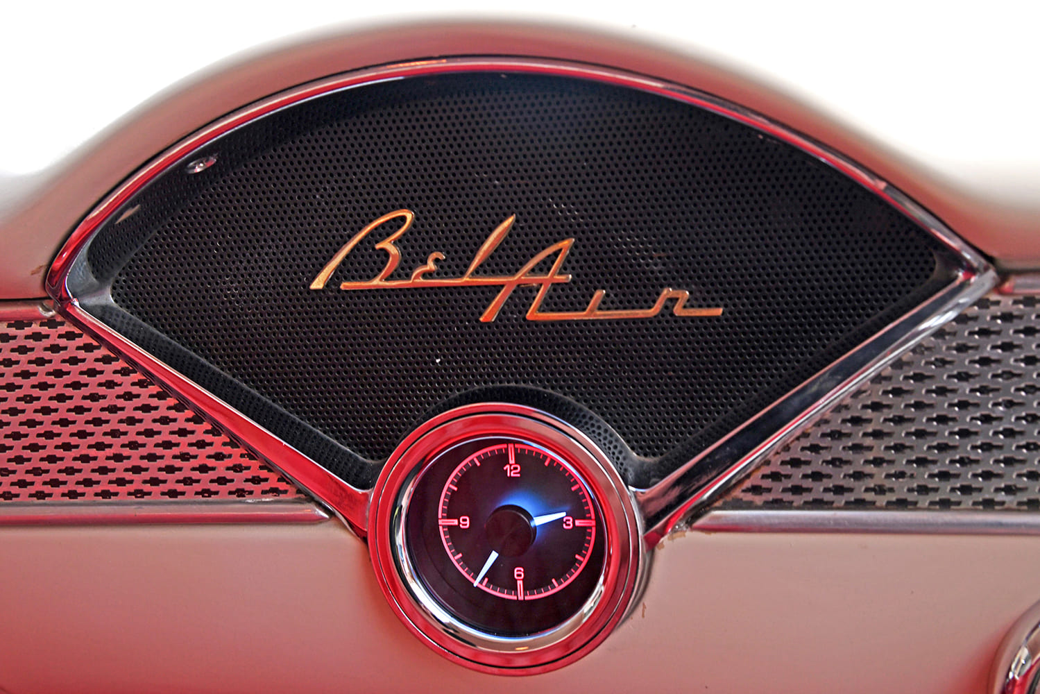 Once his ’55 Chevy Bel Air was in hand, Matt called the talented crew at Miranda Built in Boynton Beach, Florida, to talk about his next build and to come up with a concept for the car. The project started back home in Long Island first, with the bodywork being handled by V&J Auto Body in Lindenhurst, New York. The Chevy’s body was in excellent shape for being a local Northeast car, so no cutting or welding was needed. After cleaning up the skin and prepping the flanks, the crew sprayed the Chevy in a combination of PPG Gypsy Red and India Ivory.