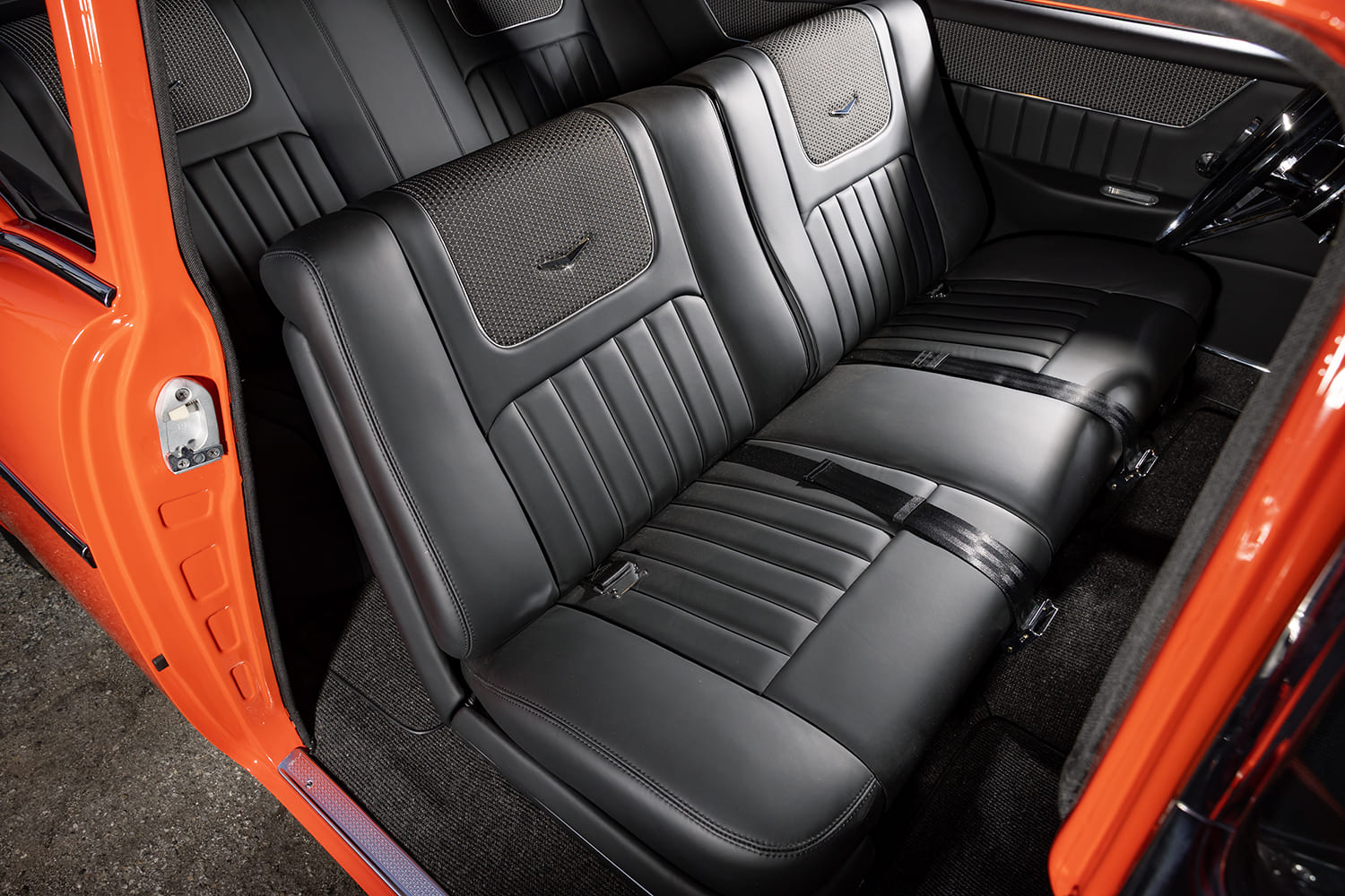 Upholstery: Black leather upholstery by Elegance Auto Interiors (Upland, CA)