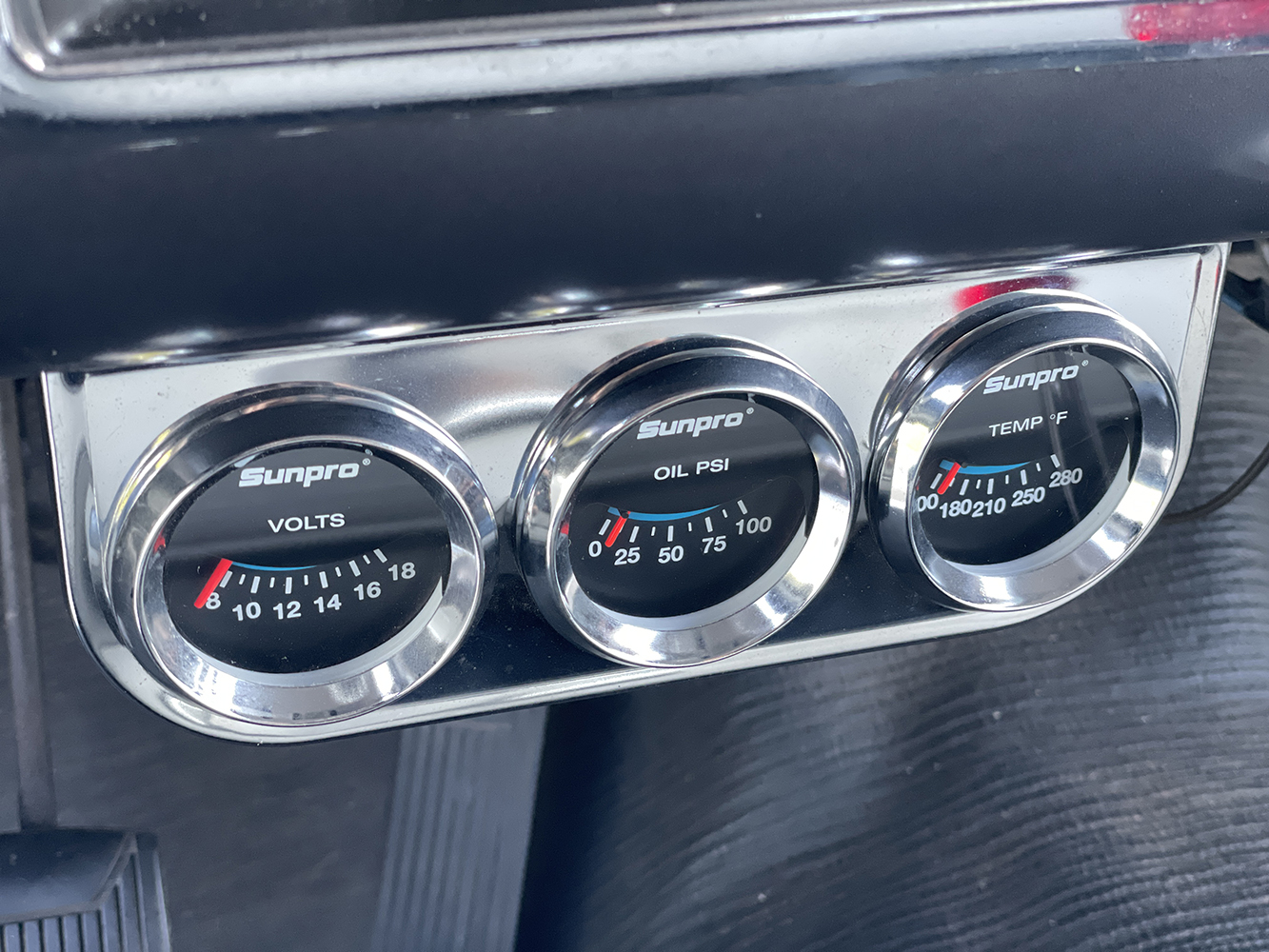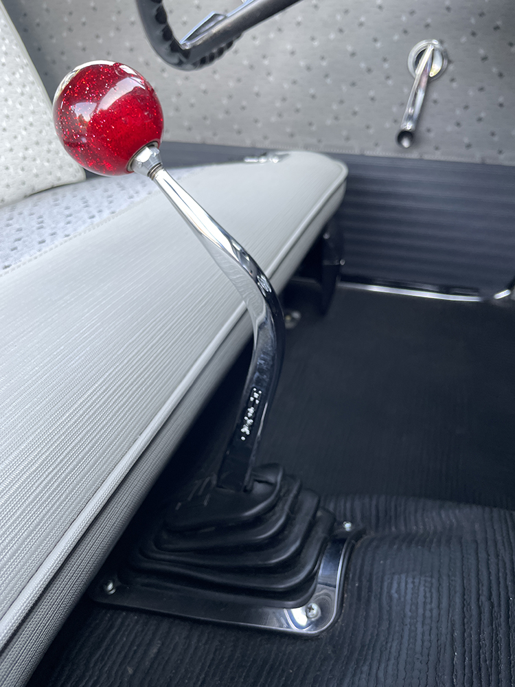 Nothing shames a challenger better than a big-inch FE V-8. To hit the go pedal, Jeff started with a 1966 Mercury 428ci Police Interceptor (PI-code) needing a full rebuild. The late John Osbourne of Northern Performance in Burlington massaged the block to perfection in preparation for Don Palmer of Georgina, Ontario, Canada, to balance and begin assembly. Deep inside, a cast-iron crank links to forged steel rods topped by Sealed Power cast-aluminum pistons generating 10.5:1 compression getting bumped by a stock solid lifter cam. Up top, a set of reworked iron heads generate plenty of power. At the same time, a rare factory aluminum three-deuce intake breathes deep through a set of factory Ford Holley carbs by Terry Redmond with a custom linkage by Rob Purcell, both club members. A factory dual-point distributor lights the fire while exhaust tears through a set of original Ford 406ci shorty headers to a custom 2-1/2-inch steel exhaust complete with scavenger pipes, Xlerator mufflers, and Hooker electronic cutouts, all by R&S Custom Exhaust of Palmerston. Real hot rods have three pedals, so the goods move through a custom-mounted 1967 Ford Top Loader wide-ratio four-speed, packing a McLeod clutch and pressure plate, all by Redmond. A driveshaft by Marvin Freiburger & Sons of Walkerton plants the 400 hp.