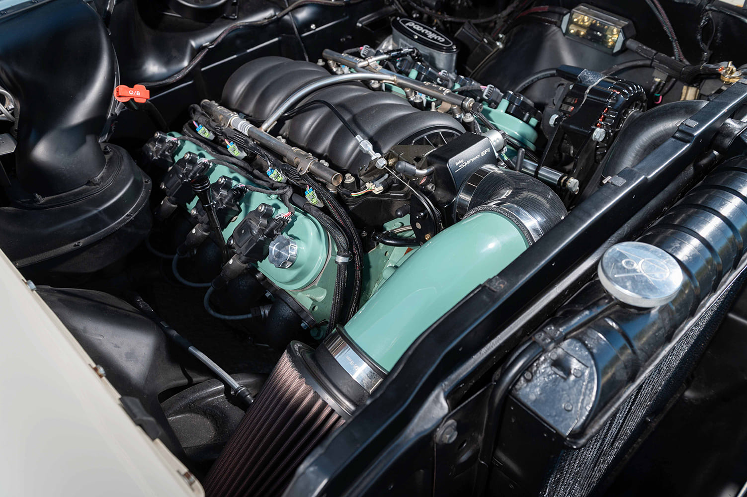 While the exterior and interior maintained timeless appeal, the original “three on a tree” column shifter didn’t inspire the same confidence. “I just wasn’t comfortable driving it like that,” Candice admits. “I wanted to keep the car’s personality but make it something I could actually enjoy on long drives.”