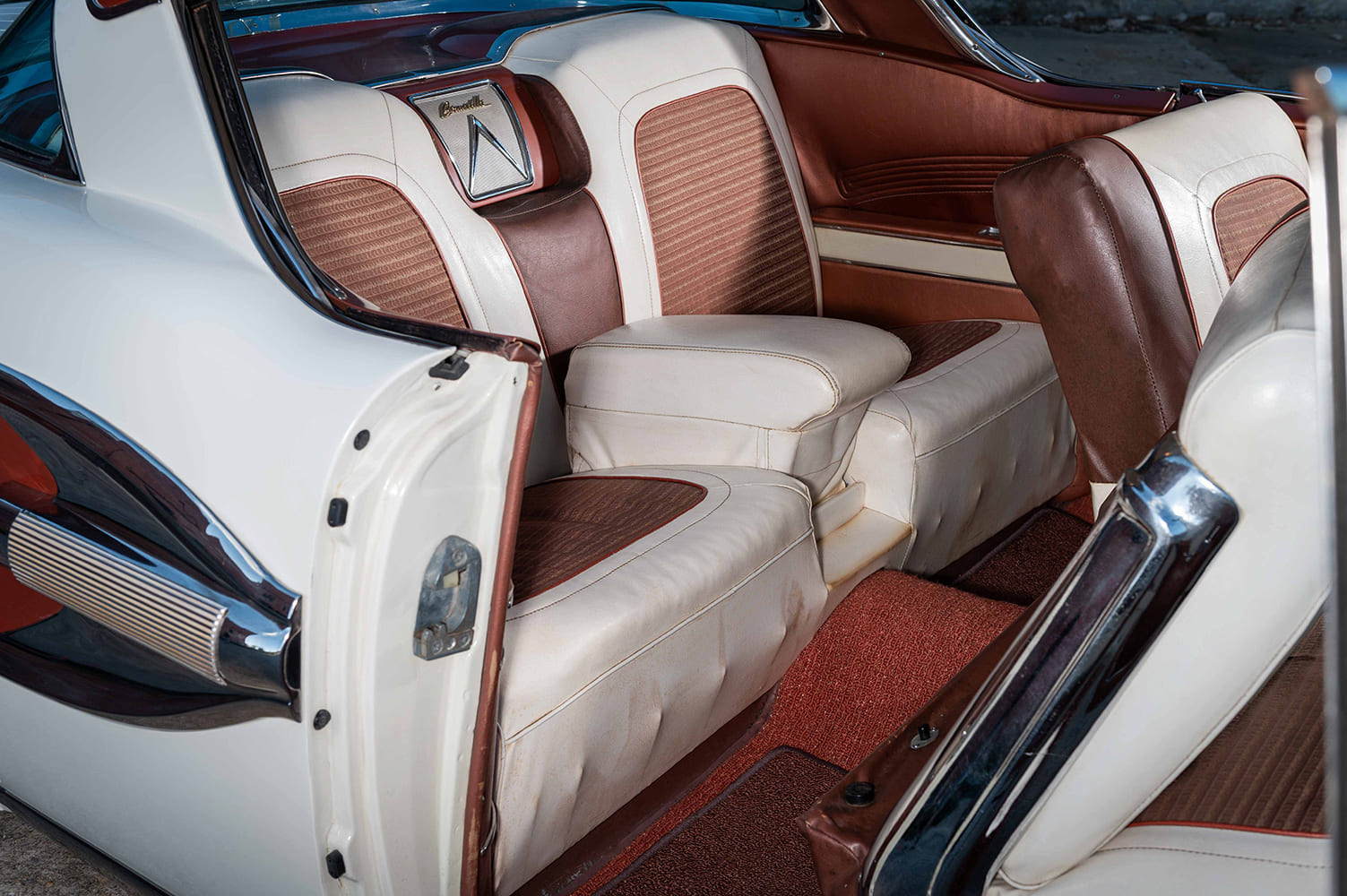 Once the Bonneville was home, Candice chose to preserve much of its originality, at least for now. The car still featured its original 67-year-old factory seats, panels, and carpet, including the rare and no-longer-produced Trinidad “Starry” carpet, a detail she was determined to protect. The paint underwent a correction process that restored the factory finish’s original shine.