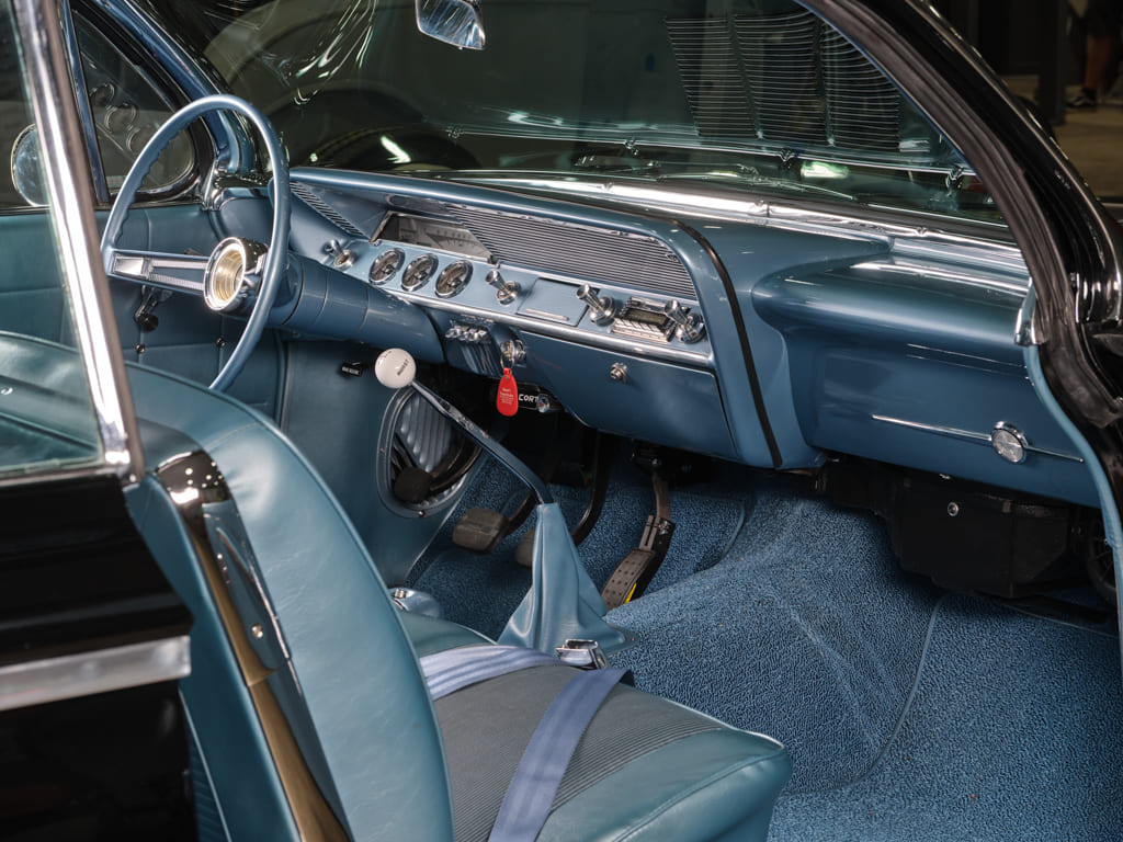 Apart from the Dakota Digital VHX gauges and dash insert, the interior maintains its stock appearance. With fresh carpet, new door panels, and recovered seats, it all plays perfectly into the classic scene that originally pulled Jim in. The deliberate omission of modern-looking billet parts was all by design. “I could have gone with a more updated look inside, but the ’62 Chevy’s interior is perfect as it is,” Jim emphasizes.