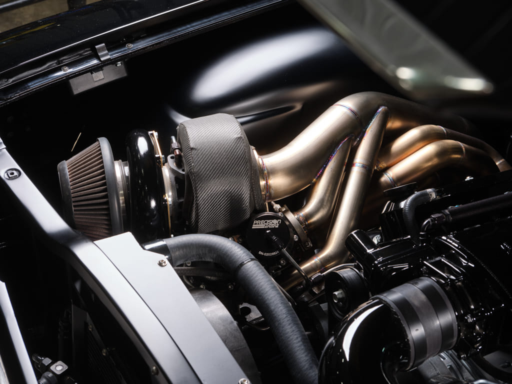 The team pulled the overweight, underpowered 348 and swapped in a Chevrolet Performance LS3. Although the engine internals remain largely unchanged, the J-Rod crew, likely Chad’s idea, incorporated a Precision Turbo 76mm turbo into the mix to fulfill Jim’s pursuit for increased power. That certainly did the trick as the 376ci LS now delivers 652 hp and 712 lb-ft of torque.