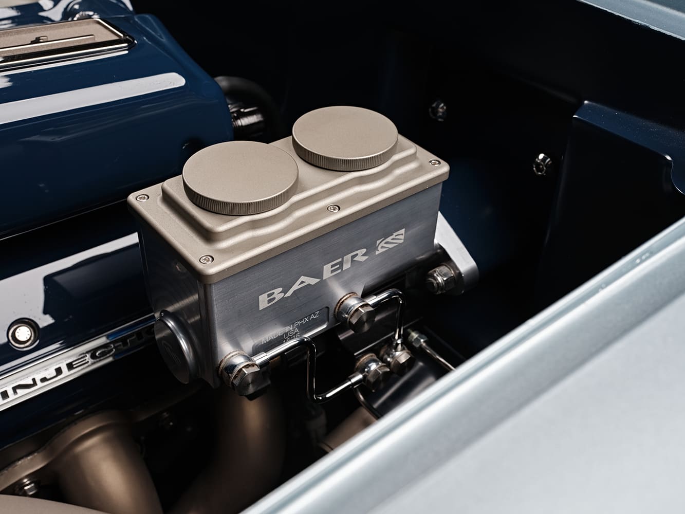 The braking system is based on a Baer master cylinder, paired with Corvette factory pedals that channel stopping power to the 14-inch drilled-and-slotted rotors with six-piston calipers at both the front and the rear.