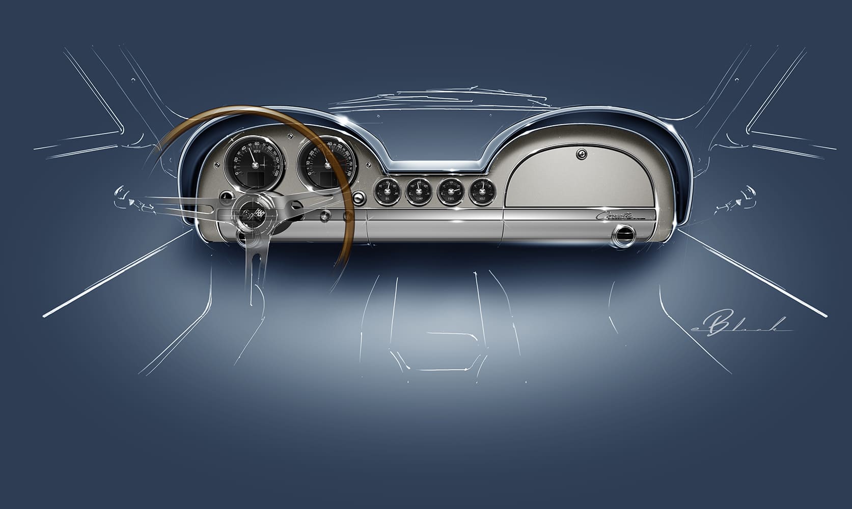 The Corvette, an older restoration, originally came into Casey’s hands through a friend. Over time and happenstance, Casey brought the split-window to Jason Smith of Hot Rod Garage (HRG) in Sand Springs, Oklahoma. Casey spoke with Smith and decided to let Smith and the staff at HRG “go for it.” Smith enlisted the help of Eric Black from eBDCo. From here, ideas were developed based on the concept that the Corvette would have a European “flavor,” as if it were built for the European market. Inspiration was drawn from Ferrari, Jaguar, and the Mercedes gullwing–more on Ferrari when we discuss the color.