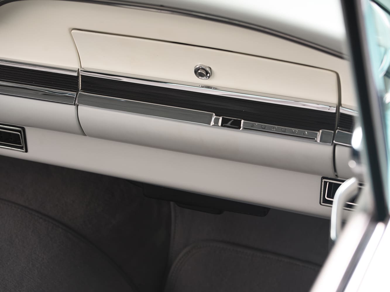 An American Autowire kit, installed at CC, accommodates all the electrics. The front bench seat is sourced from Snowden Custom Seats, and the rear seat is reworked, both covered in Moore & Giles leather and a light gray provided by Gabriel and Son Upholstery Shop. The carpeting features the ubiquitous German square weave. The necessary brightwork for interior and exterior comes courtesy of Advanced Plating.
