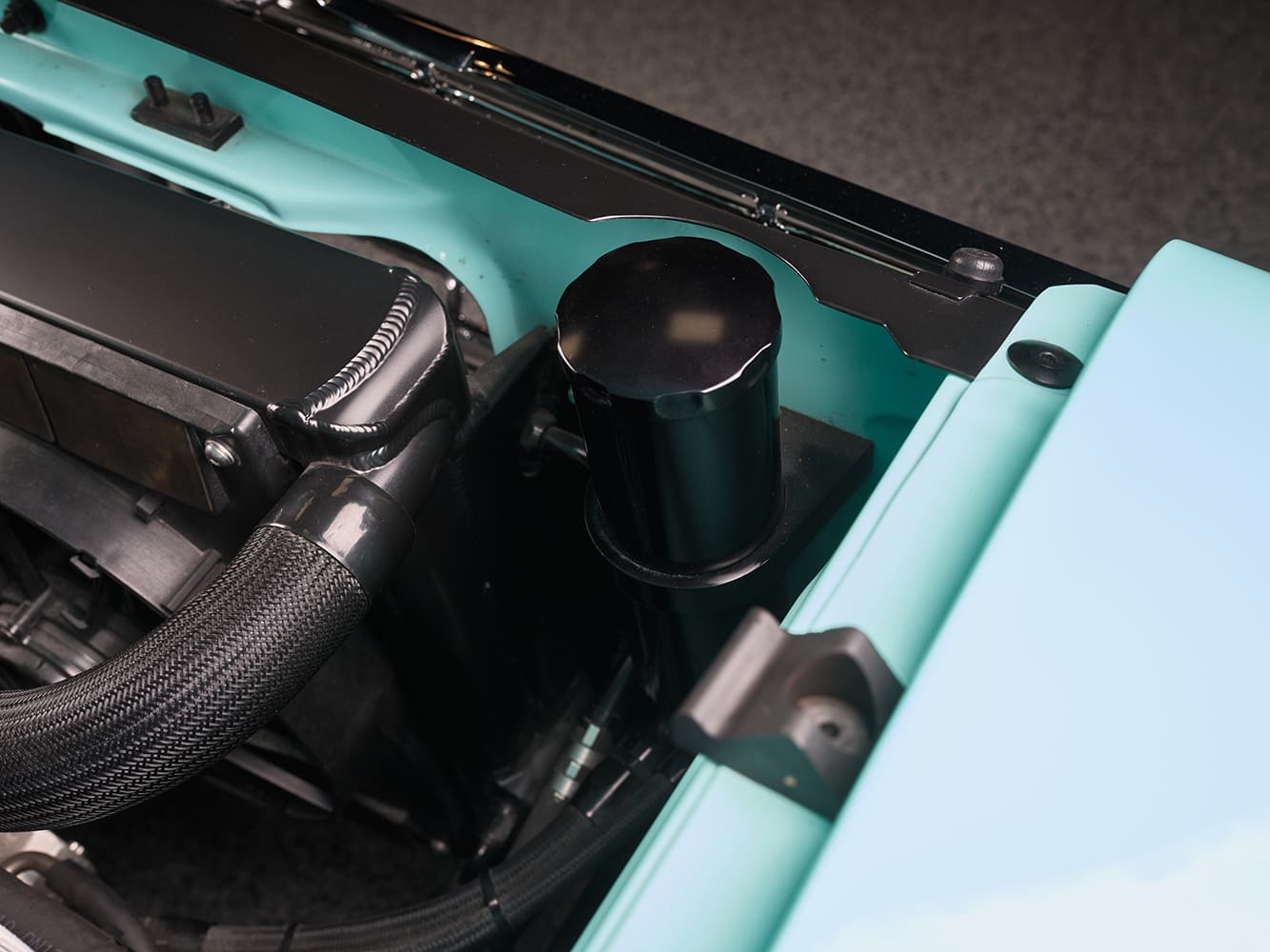 Stopping power is managed by 13- and 14-inch Baer drilled-and-slotted rotors with Baer calipers behind Forgeline wheels wrapped in Michelin tires. The Falcon’s striking appearance is further enhanced by stunning Forgeline forged three-piece Rodster wheels, in sizes 18×5.5 and 18×9.5. These wheels feature a sleek finish with Hyper Silver and Diamond Cut centers, complemented by polished outer lips and center caps that add an elegant touch. The Pilot Sport 4 S high-performance rubber represents the Michelin rubber, measuring 245/35R18 in front and 265/40R18 in back. The Pilot Sport 4 S was engineered from endurance racing technology and delivers exceptional dry grip and outstanding wet braking performance.