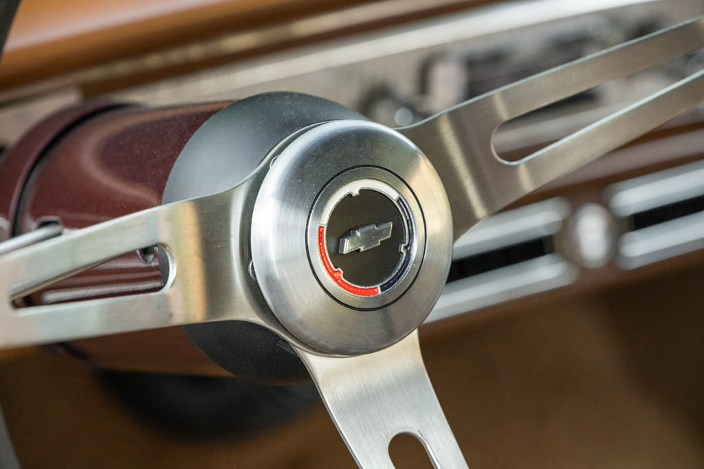 To Montie, a modern drivetrain was a must as he wanted ample power to carry the heavy Chevy down the road with minimal effort. An LS3 was sourced from Chevrolet Performance, a McLeod twin-disc clutch offers smooth shifting, and TREMEC Magnum six-speed transmission easily handles the power, with the overdrive being a bonus for effortless highway driving. Montie liked the idea of taking this fullsize in a manual direction as shifting at the rpm of his choice is an attractive alternative to the natural boredom that can accompany driving an automatic.