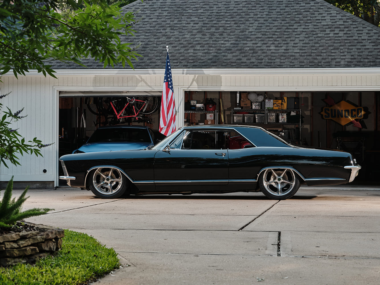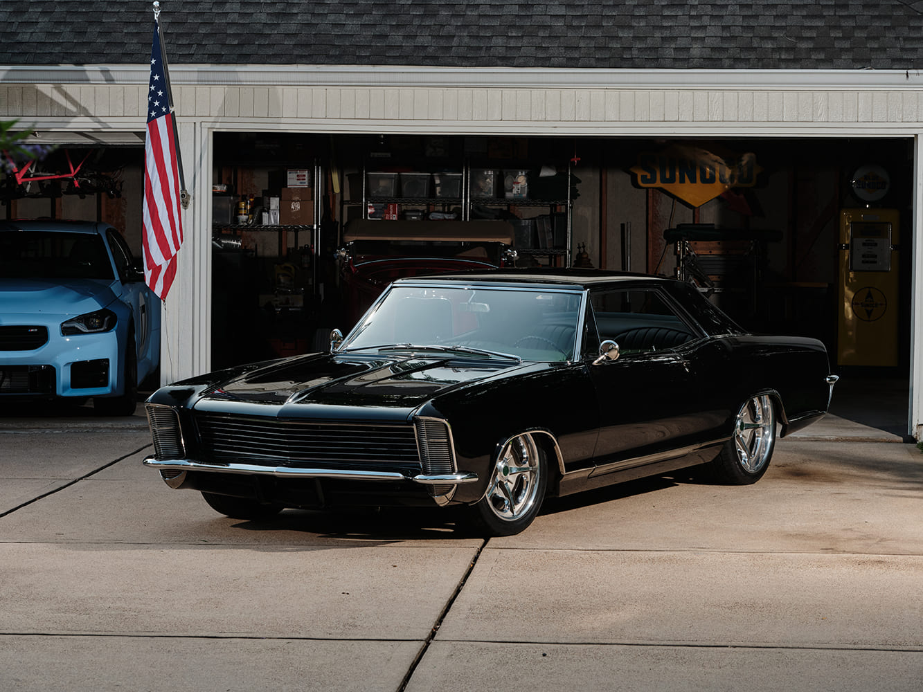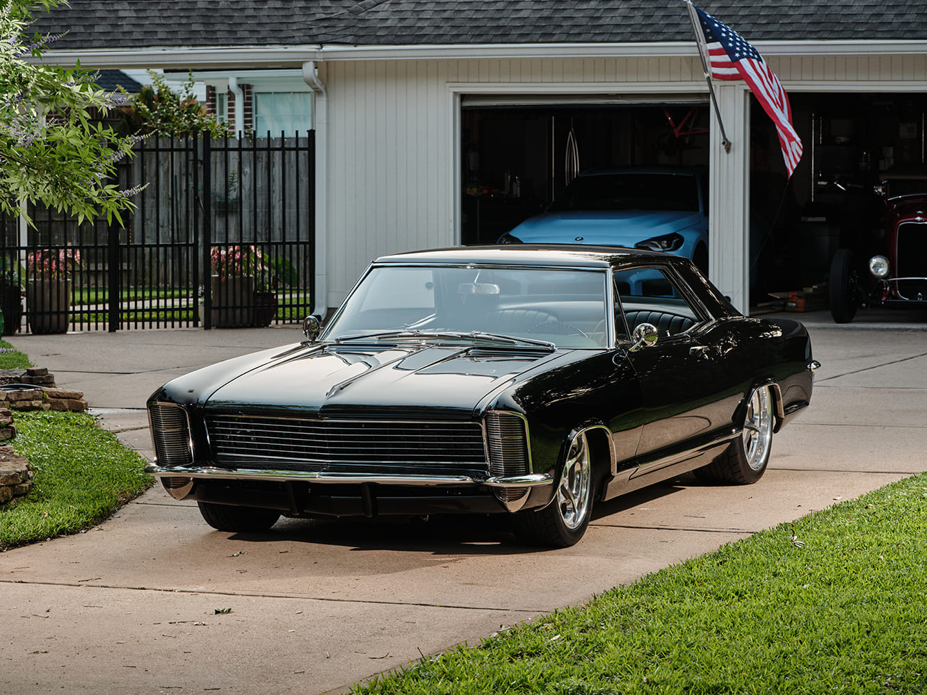 Todd and Jason Smith of the Hot Rod Garage (HRG) discussed whether to start with an original car or a project that already had some work completed. The two considered building a mild custom a restomod. Todd wanted a cruiser, but one that had plenty of “oomph.” However, he made it clear that the final appearance had to retain much of the original Riviera factory’s beauty. With a longstanding passion for European cars from the 1950s and early 1960s, especially Porsches, Mercedes-Benz, and others from the era, the 1965 Buick Riviera’s black over green color combination was an easy choice for Todd. Initially agreeing to start with a once-started-but-now-abandoned project, they later found a donor that had been recently restored with a Connect and Cruise LS3/525 and 4L70E. They both will tell you they should have started from “scratch.”