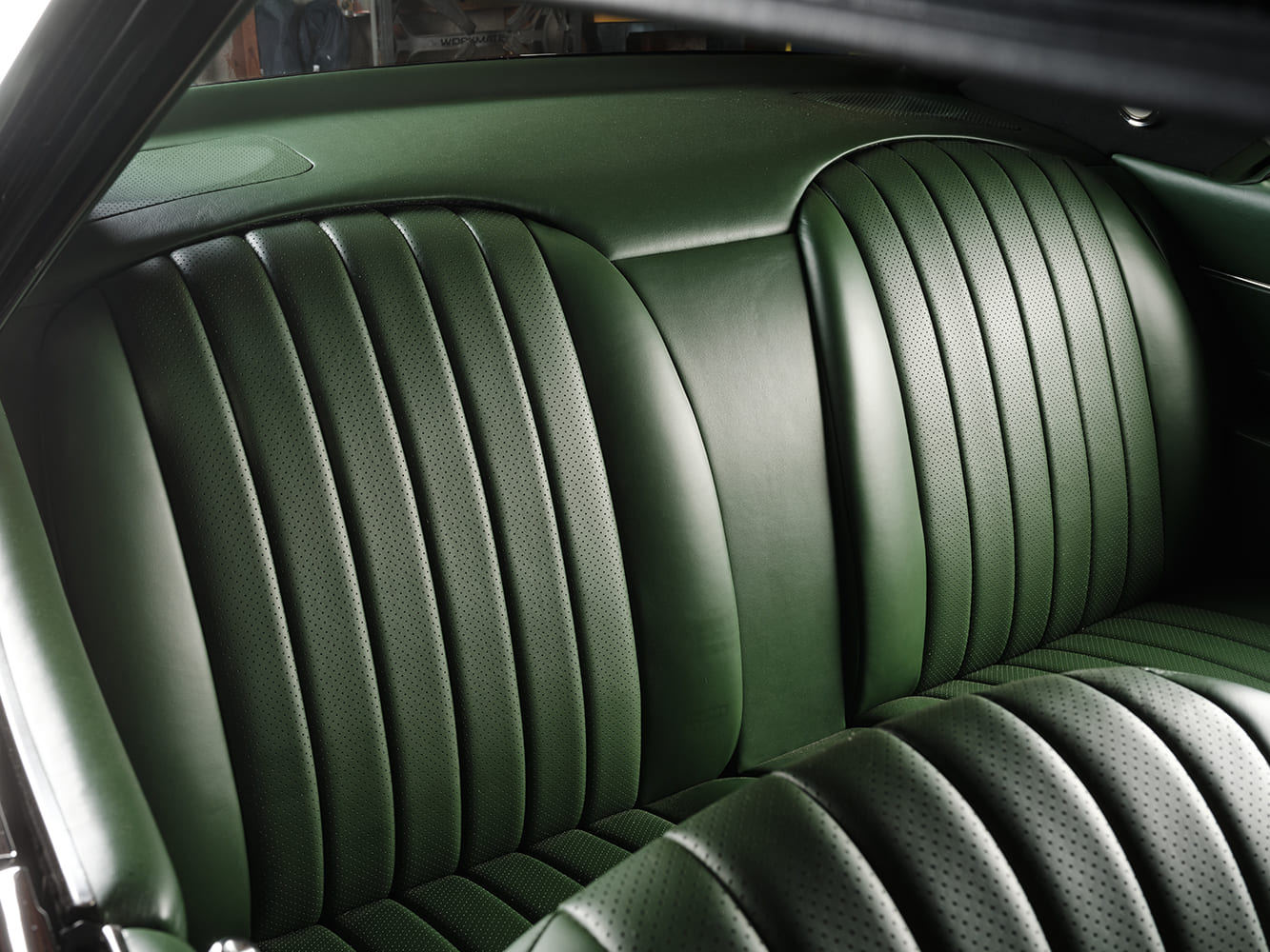 Todd, Smith, and Black decided to transform the interior by removing all wooden elements and opting for a sleek combination of smooth and perforated leather, along with matte black, gloss black, and chrome accents. They retained most of the OEM interior structure, focusing on improving materials, fit, and finish. One of their striking changes included replacing the traditional chrome waterfall speaker grille between the back bucket seats with a sophisticated, smooth leather option, evoking a range of European designs.