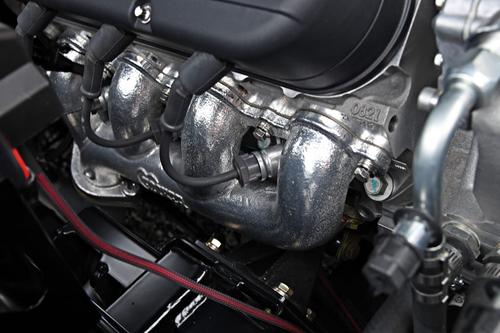 Steel Town fabricated a complete exhaust system, starting with Hooker ceramic-coated cast manifolds feeding a pair of Borla Pro XS mufflers through 2.5-inch stainless steel pipes.