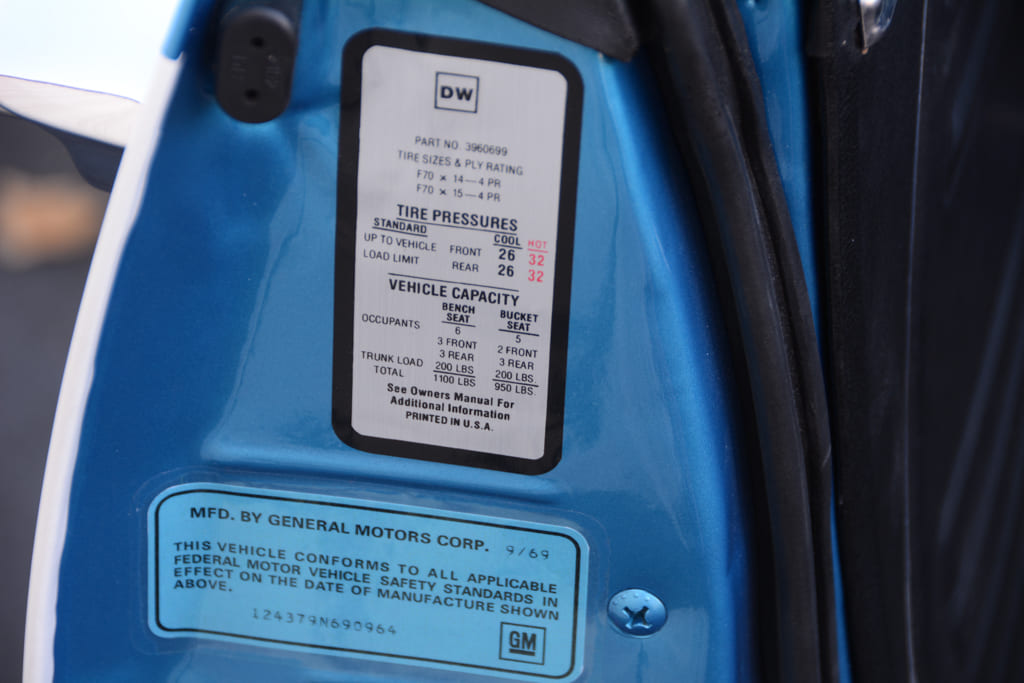As Jim unraveled this enormous amount of information, he also scoured the country for date-code correct components to complete a factory-correct restoration. Jim sourced engine and drivetrain parts that coincided with the car’s late September ’69 build date. This included a date-correct L72 engine, M22 Muncie four-speed transmission, and BE 12-bolt rearend with 4.10:1 gears.