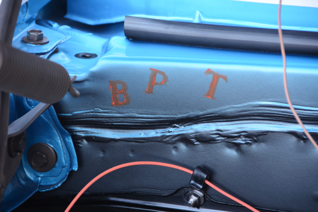 032 Close up of the engine bay showing BPT marked on the engine block indicating custom tuning or parts