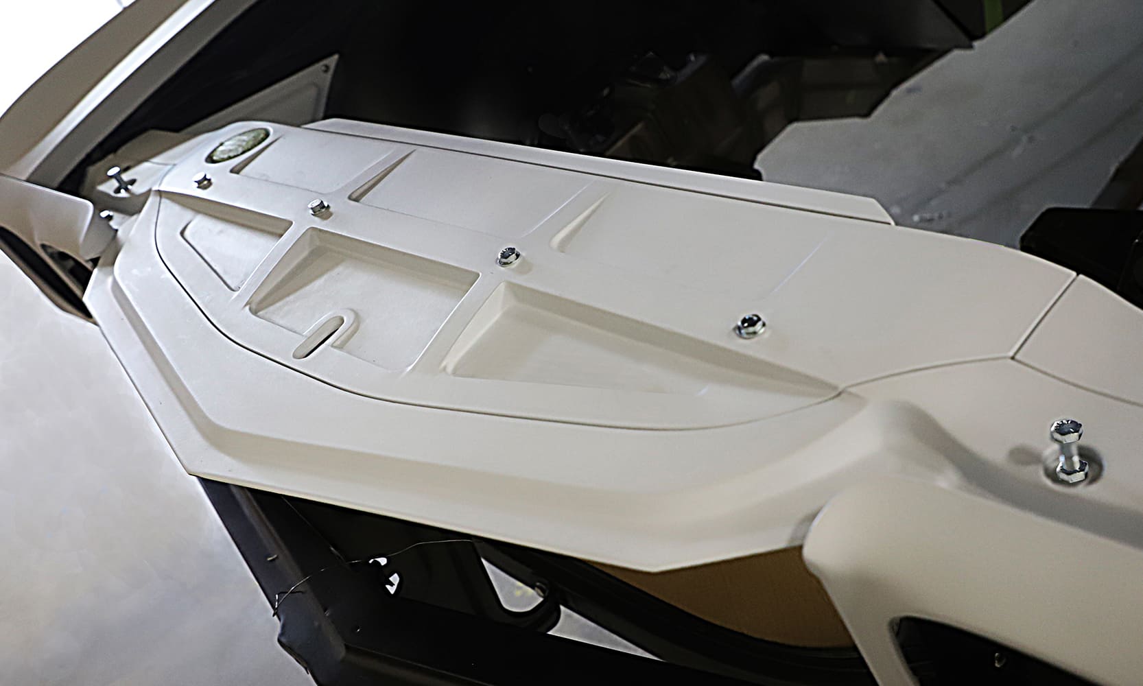 Another small detail was added for plates that fit around the hood pins. These plates are typically screwed to the surface of the hood, protecting the paint from being marred by the clips inserted through the pins to ensure the hood can’t pop open unexpectedly. To create this recess, special tooling was made to emboss a circular indentation in scrap pieces of metal. These were then fitted into the hood, welded, and finished. Again, this small detail makes a noticeable improvement in the appearance of this feature.