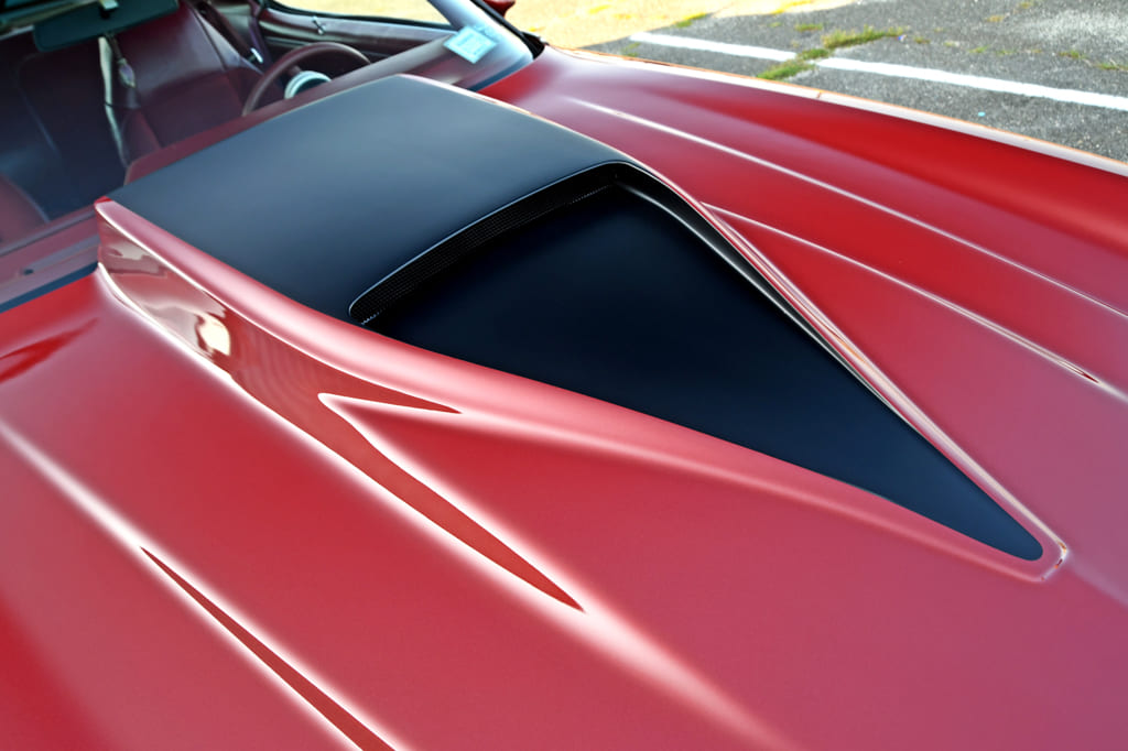 I loved the original Z28 hood scoops and I wanted to keep the look, but I needed clearance for the engine,” Nick states. “So, my good friend Steve Wider built me a tall, widened, and functional Z28 hood out of fiberglass. He made the scoop by sectioning two Z28 scoops and glassing them to the 2.5-inch cowl hood.”