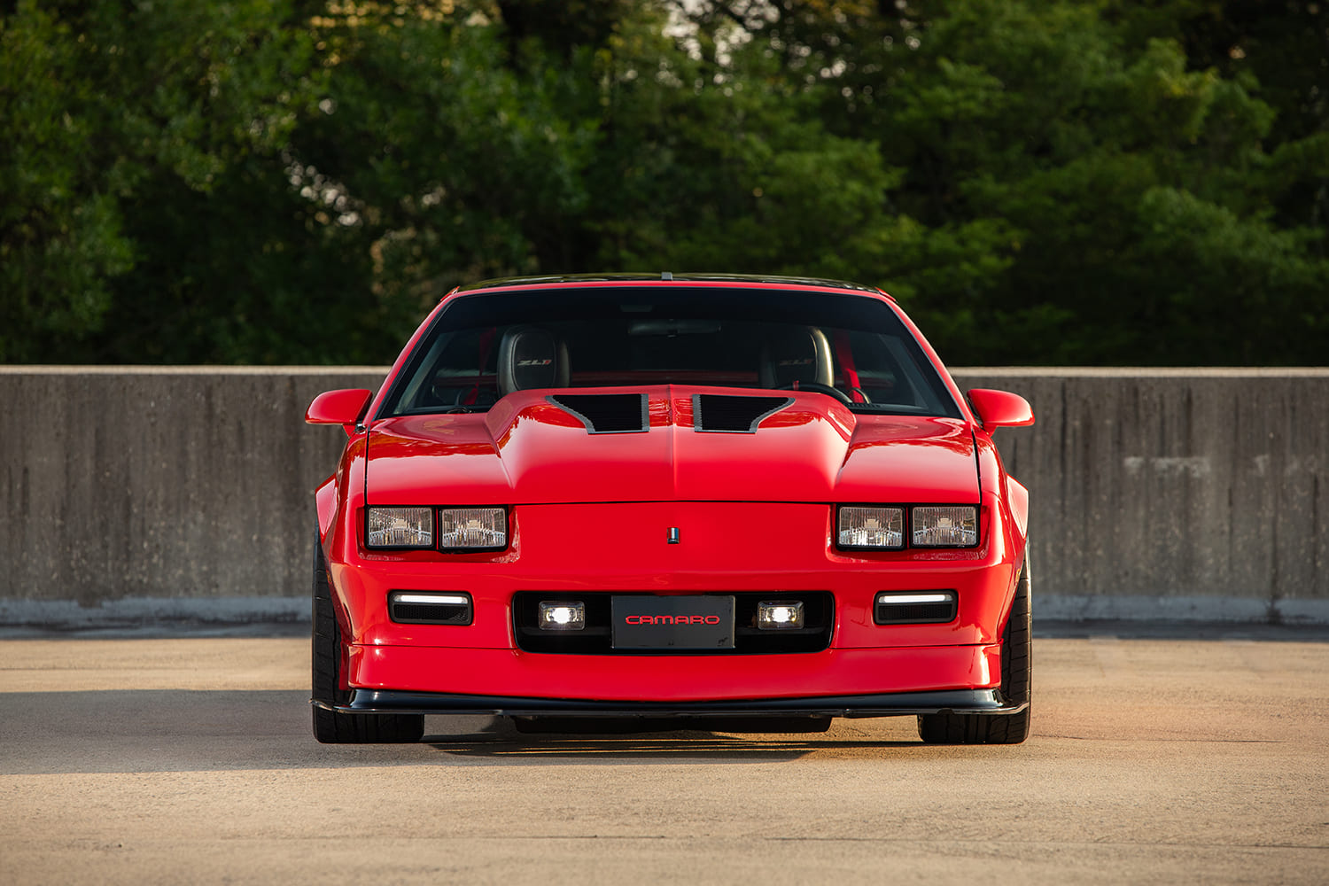 018 1988 IROC Z Camaro side view IROC Z decal red paint wide tire setup