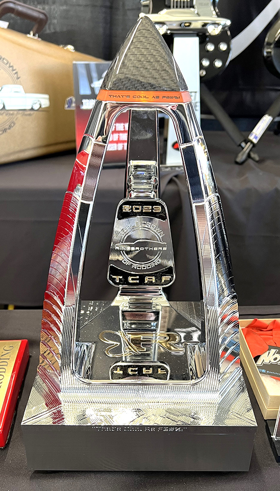 The Ringbrothers trophy that was presented to Rod Parsons for his Chevy pickup. The trophy is stunning.