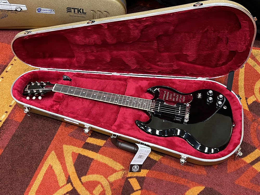Here is one of the six Triple Crown SG Specials guitars from Gibson in its own TKL Vectra MC Gold-colored molded case with a Cushion-Soft plush lining. Yes, all six guitars are the real deal … do we have a budding rock ’n’ roller in our future?