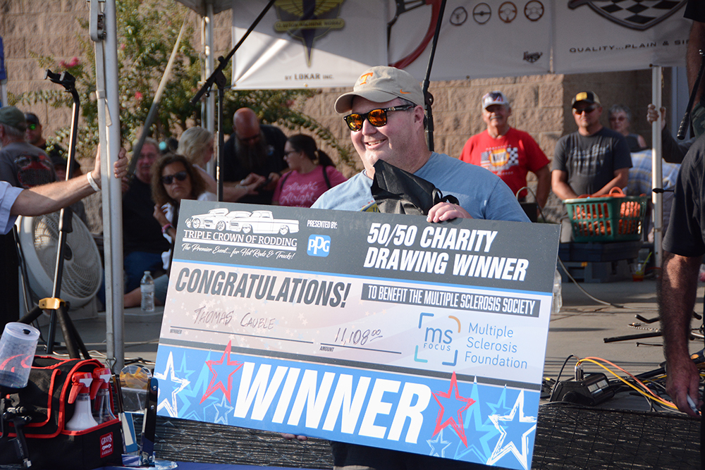 That smile on Thomas Cauble’s face is real as he took home the 50/50 Charity Drawing to the sum of $11,108. We bet it was tough getting that check to go through the drive-thru window at the bank … but worth the effort. The remaining $11,108 went to the local offices of the Multiple Sclerosis Foundation. Job well done.