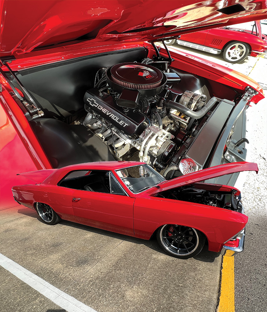 Kelly Strandmark of Byron, GA, brought out his ’66 Chevelle in brilliant red that’s powered by a 402-inch big-block Chevy. Bringing this brute to a stop is a complete Wilwood brake system.