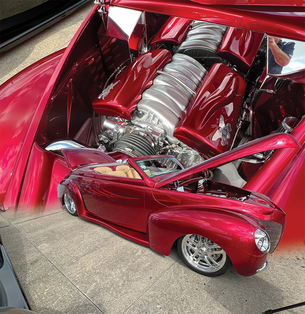Dexter O’Steen of Alachua, FL, brought out his ’40 Merc convertible that is powered by a 427 LS7 with a custom intake and rides on a Corvette C4 suspension.