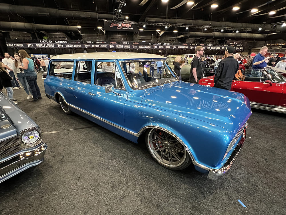 Chevelles are always popular, but this ’70 convertible brings new meaning to “drop-top luxury” with its Art Morrison Enterprises chassis, Forgeline one-off wheels, PPG Land Rover Kaikoura Stone Metallic, and matte accent colors. It is loaded with other one-off components.