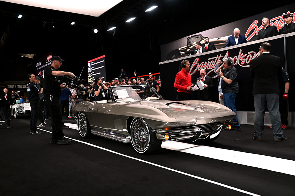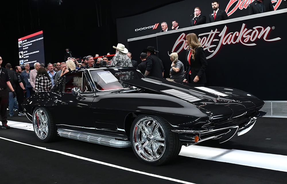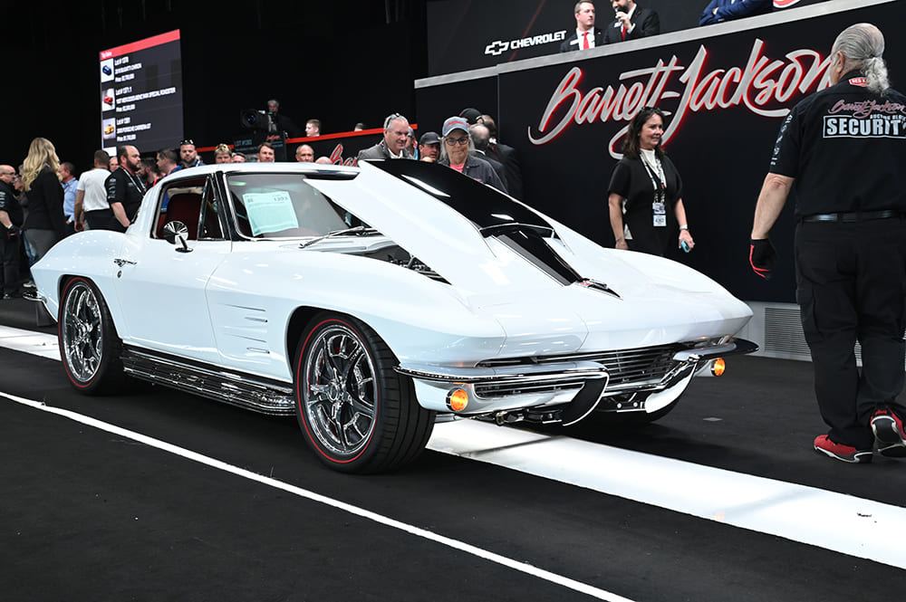 A black “split-window” ’63 Corvette (Lot #1343) clearly has the right eye appeal as it brought in $478,500. It rides on an Art Morrison Enterprises fully independent chassis and is powered by a 650hp LT4.