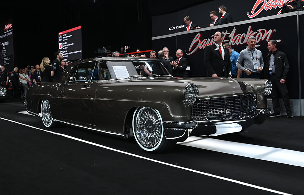 If you like your ride leaning on the “large” side, then this fully independent Kugel Komponents chassis, Coyote-powered ’57 Continental Mark II coupe (Lot #1357) is for you … assuming you had the $715,000 it took to buy it off the block. It is painted in a Bentley color called Sickens Dark Cashmere. It also features a Ron Mangus Interiors stitchwork.