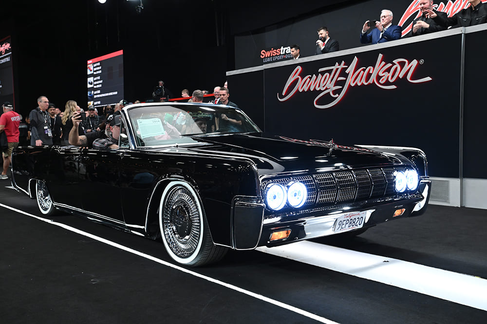 More in the “large” ride category is this ’64 Lincoln Continental convertible (Lot #1414) as it brought in $660,000. The Coyote-powered ’vert features all the right stuff, making the triple black ride something to behold.