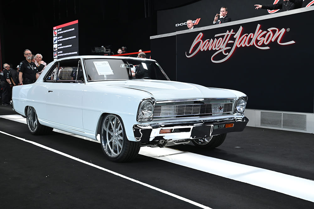This ’66 Nova SS (Lot #1316.1) had all the “right” mods and brought in a sale price of $330,000. Powered by a 5.7L LS it features a Magnuson supercharger, Wilwood brakes, and a 4L60E overdrive.