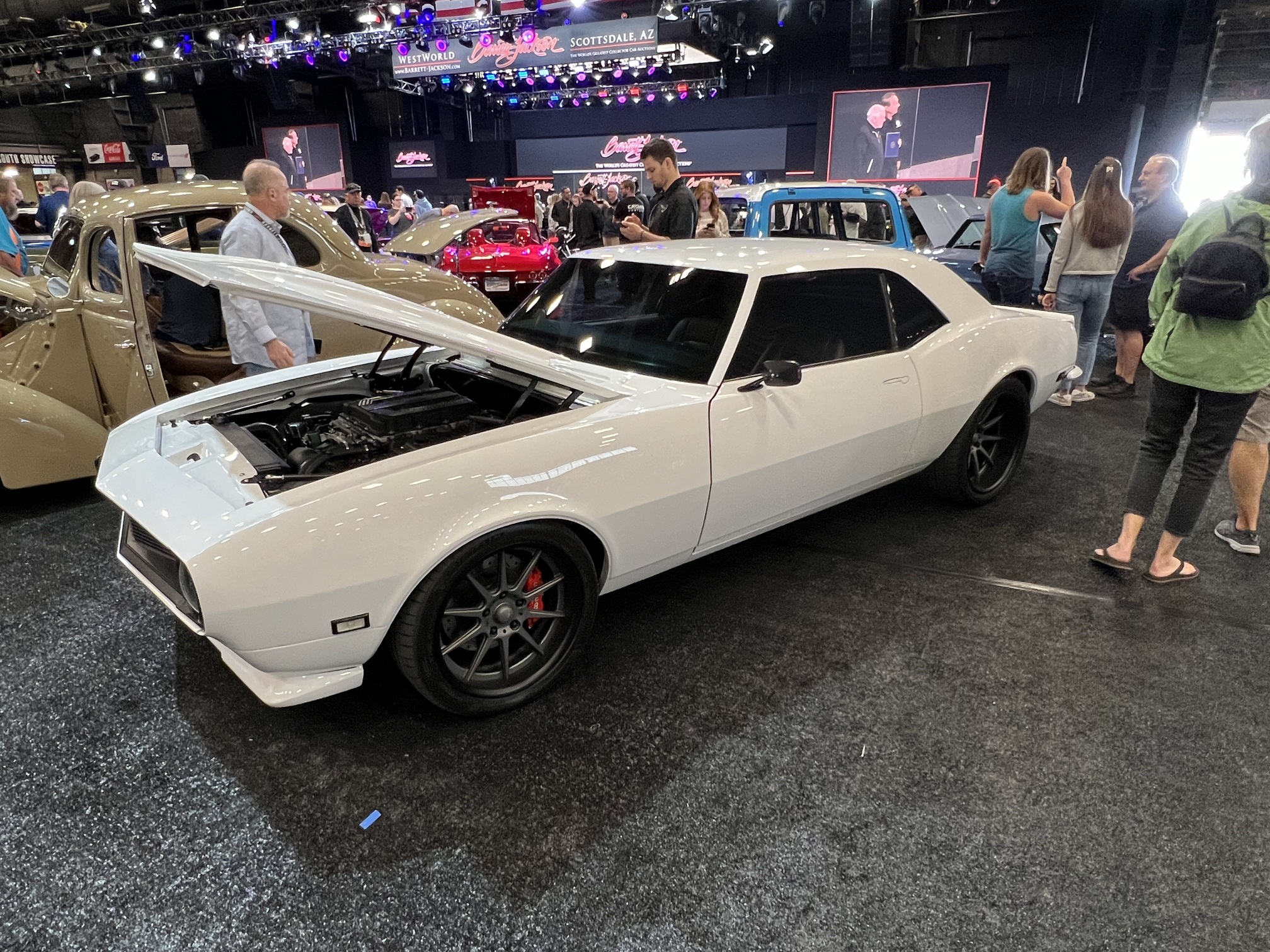 The process begins on the opening day with a parade across the world-famous auction block during Family Day, which was yesterday, before being displayed inside the South Showcase throughout the entire week. Next is this upcoming Thursday when the Top Five Finalists will be announced. But it is this coming Saturday that everyone is waiting for. It will be on center stage the winner will be announced. Also, these Five Finalists, the cars or trucks, themselves are brought up on stage for all to see as well as a very large television audience. Craig Jackson and Bobby Alloway along with other Barrett-Jackson staff will be on hand to present the winner with the check for $20,000. At this same time, the People’s Choice will also be awarded.