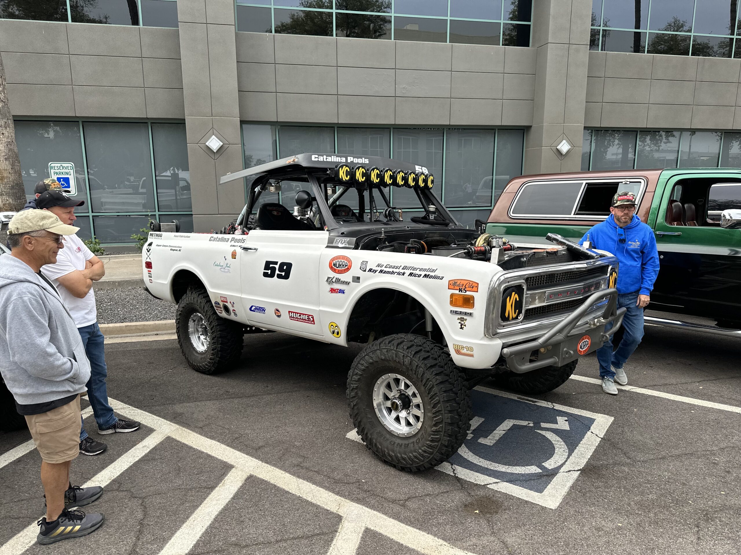 At the crack of dawn Saturday morning, Ronnie, his wife Autumn, and the entire Reunion crew started rolling the trucks into the five-level parking garage just adjacent to the Downtown Chandler Historic District’s Plaza lawn where all the vendors had set up camp~ the day prior. Top Deck (where the featured Top Trucks get reserved parking) was graciously sponsored by Arizona High Test and LMC Truck. While down below in the park, special parking was set aside for Michael’s Truck Works’ Dually Drive and Offroad Design’s Four Wheel Drive. By 9 a.m., the Reunion was rockin’ and rollin’—’80s style, of course!