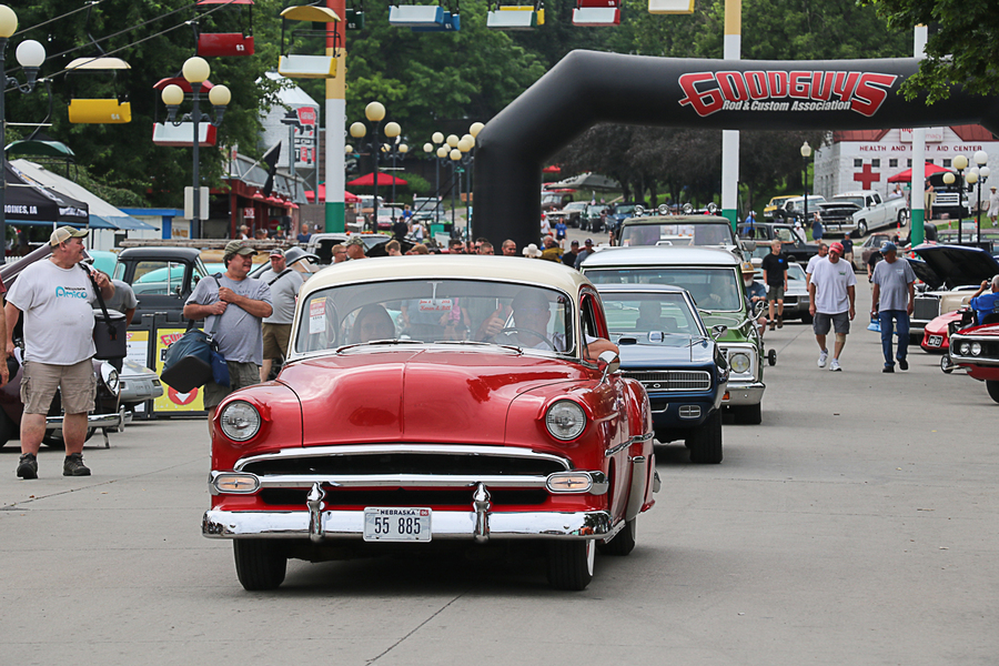 Thousands of hot rodders gathered at the Iowa State Fairgrounds in Des Moines over the 4th of July weekend to celebrate our nation’s birthday alongside the Goodguys 34th Speedway Motors Heartland Nationals. There were cool cars, great fireworks, as well as fun for the whole family, including apple pie baking and watermelon-eating contests, a huge burnout contest, autocross racing, and, of course, street rods, muscle cars, and classic trucks filling the grounds.