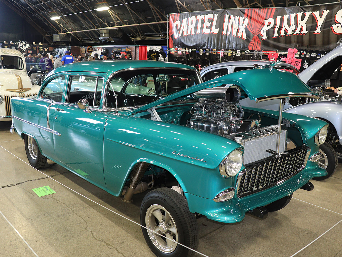 The Suede Palace always has plenty of cool hot rods to look over, and this 1955-blown Chevy Bel Air 210 Gasser belonging to Ray Fraschieri is no exception.