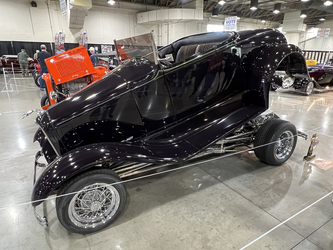 In a dazzling display, 11 newly crafted roadsters vied for the sought-after AMBR title and a generous prize of $12,500 sponsored by ARP. This impressive array featured an agreeable mix: a captivating T-bucket, two classic Model As, three stylish 1936 Fords, and five stunning 1932 Fords. Each vehicle was meticulously designed, destined to fascinate both judges and spectators alike. Notably, three vibrant orange 1932 Ford highboy roadsters graced the lineup—an uncommon sight that piqued interest.