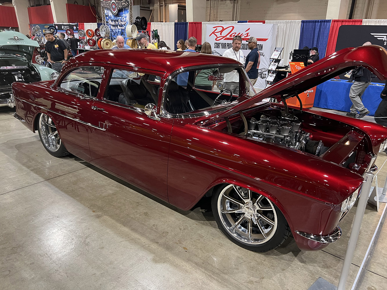 Gary Brown showcased his Alloway’s Hot Rod Shop–built PPG black-sprayed 1955 Chevy. It features a supercharged LS engine from a GM COPO drag car paired with a Bowler Performance Transmission.