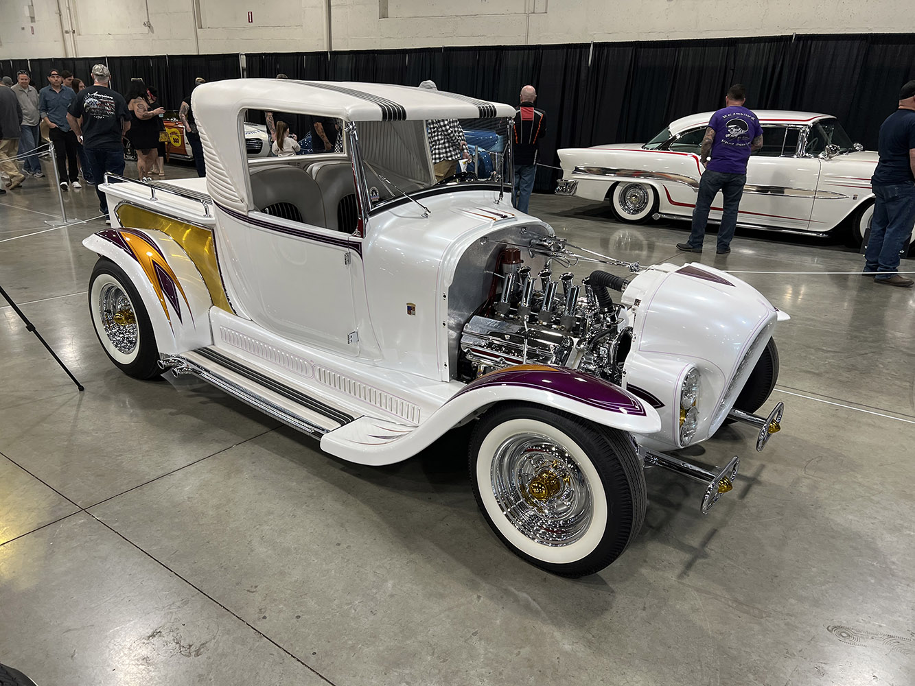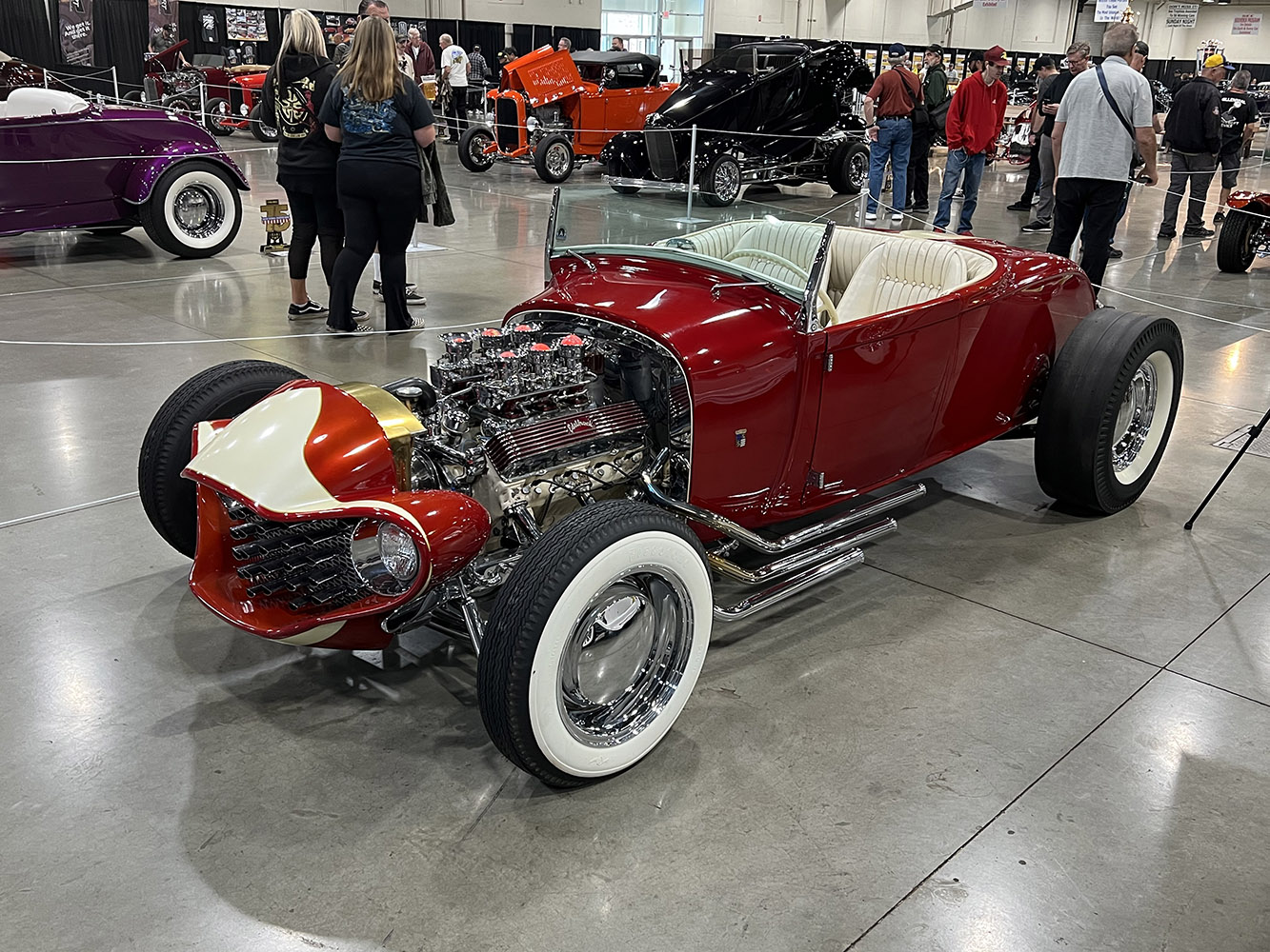 Scott Lorenzini’s ride was one of the three 1932 Ford highboy roadsters painted in bright orange that competed for the AMBR. Thanks to its 383 Donovan aluminum-blown small-block Chevy, it earned recognition for Outstanding Engine. (Upcoming feature in Modern Rodding.)