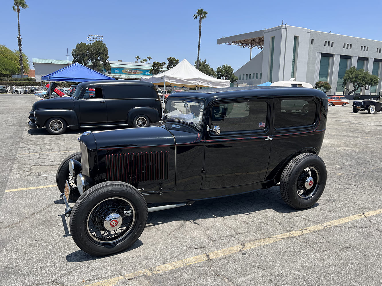 You probably can’t tell by this photo but let’s call this a 1932 Ford highboy “hybrid sedan delivery” as it does have a functioning third door in back but also side glass.