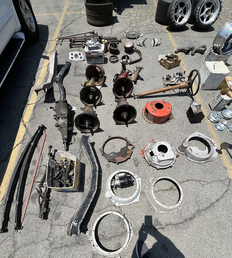 Lots of early Ford drivetrain material, adaptors, transmissions, starters, and so on, were present and for the offering.